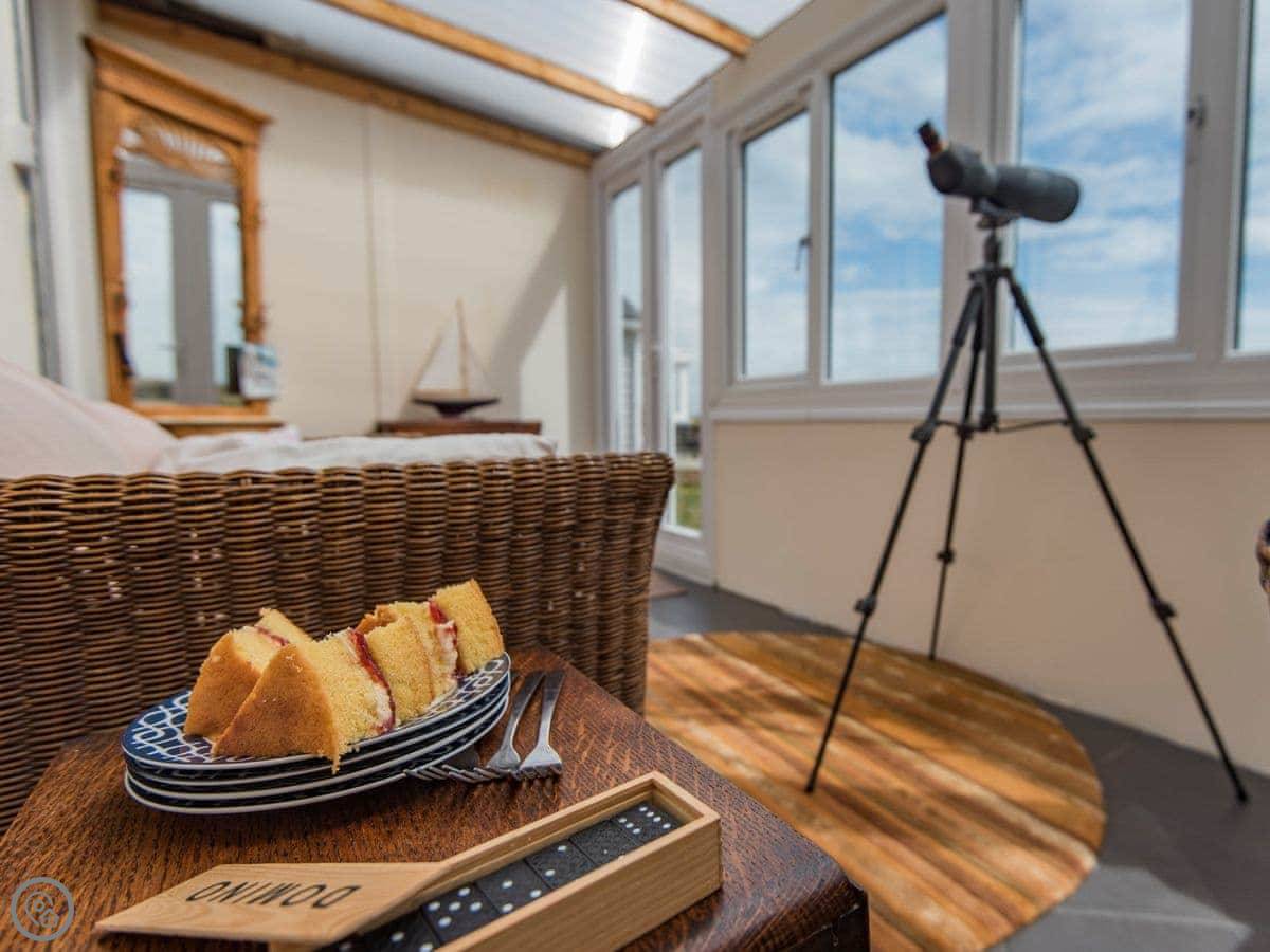 This is Helvetia. It's right on the beach at Dungeness. You get the whole place. The view is the main thing. It looks straight out over the shingle and the Channel. The owner's left a telescope inside. You can watch the ships, or the birds, or the stars if it's clear.