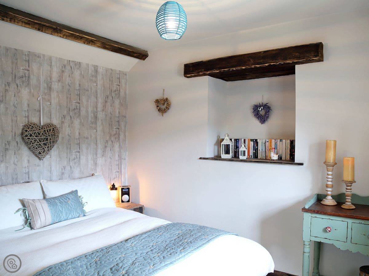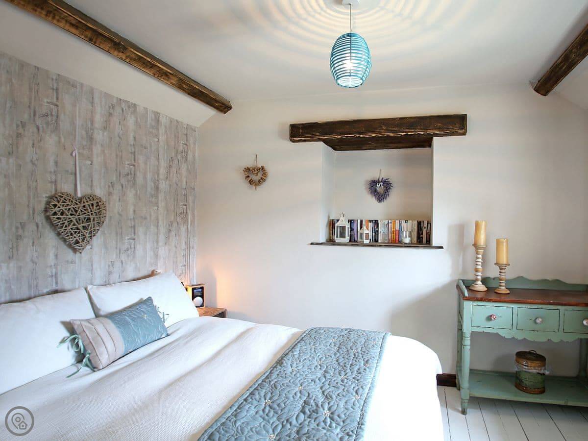 The cottage sleeps two. One bedroom, one bathroom. It's got a 4 Star rating. It's small but comfortable. The ceilings are low in some parts because of the beams, so watch your head. The stairs are steep.
