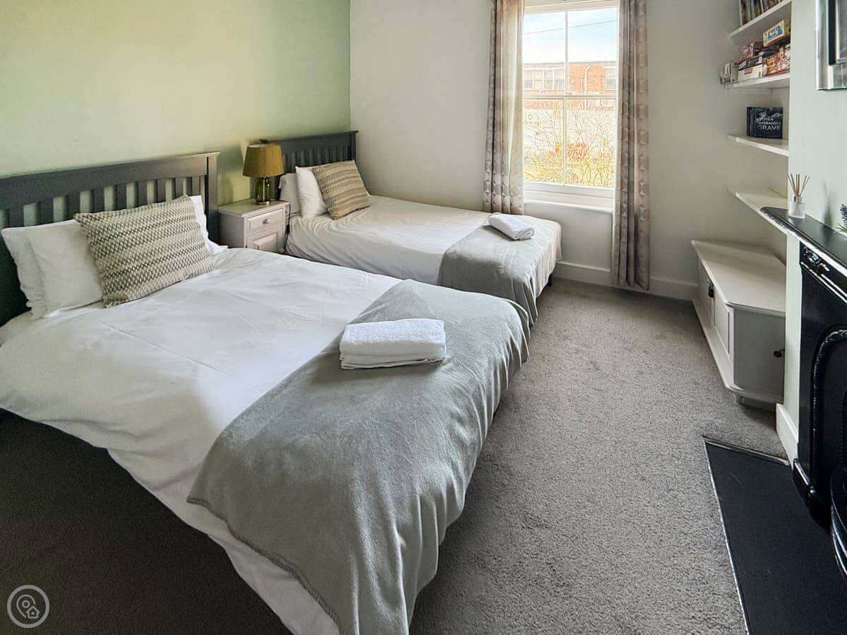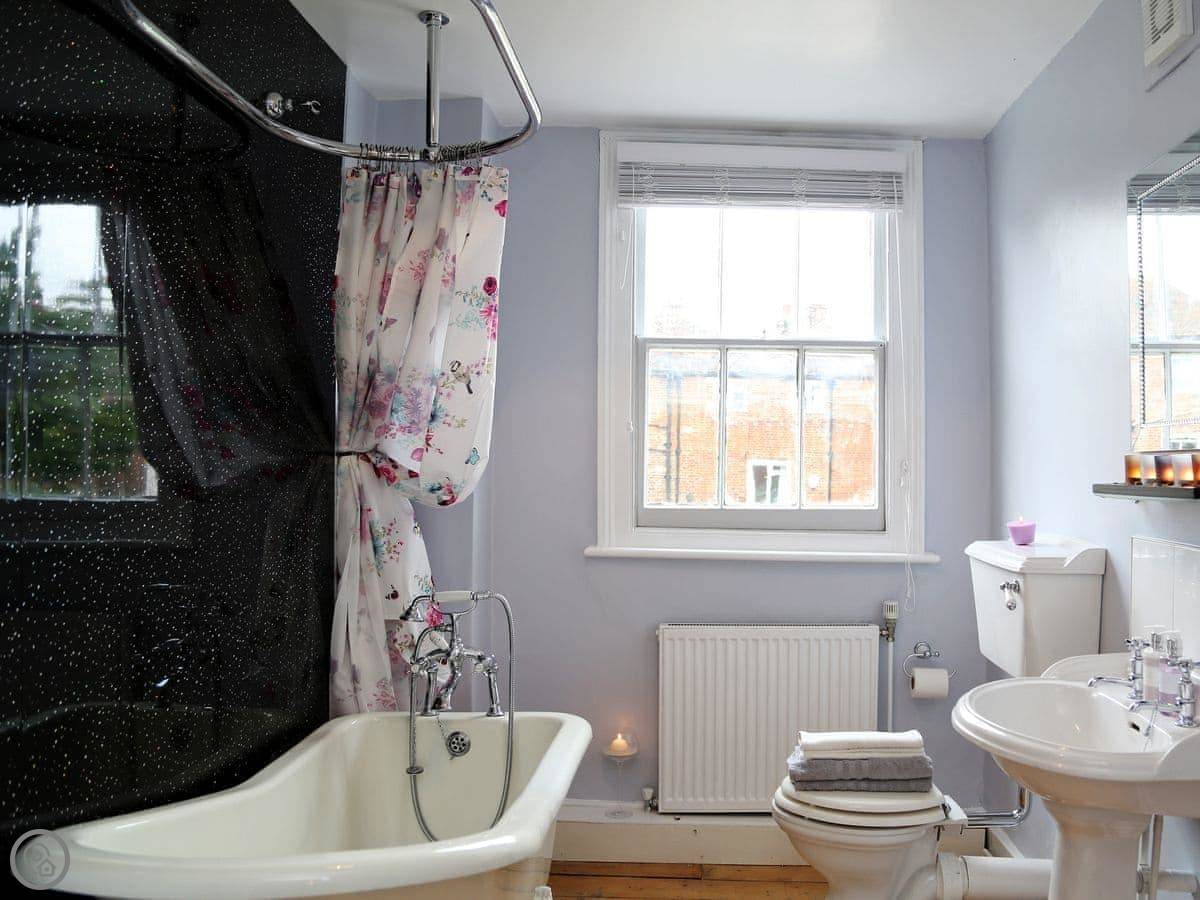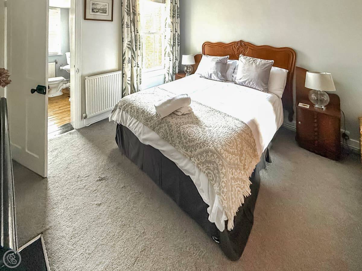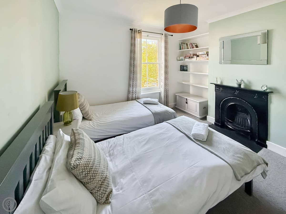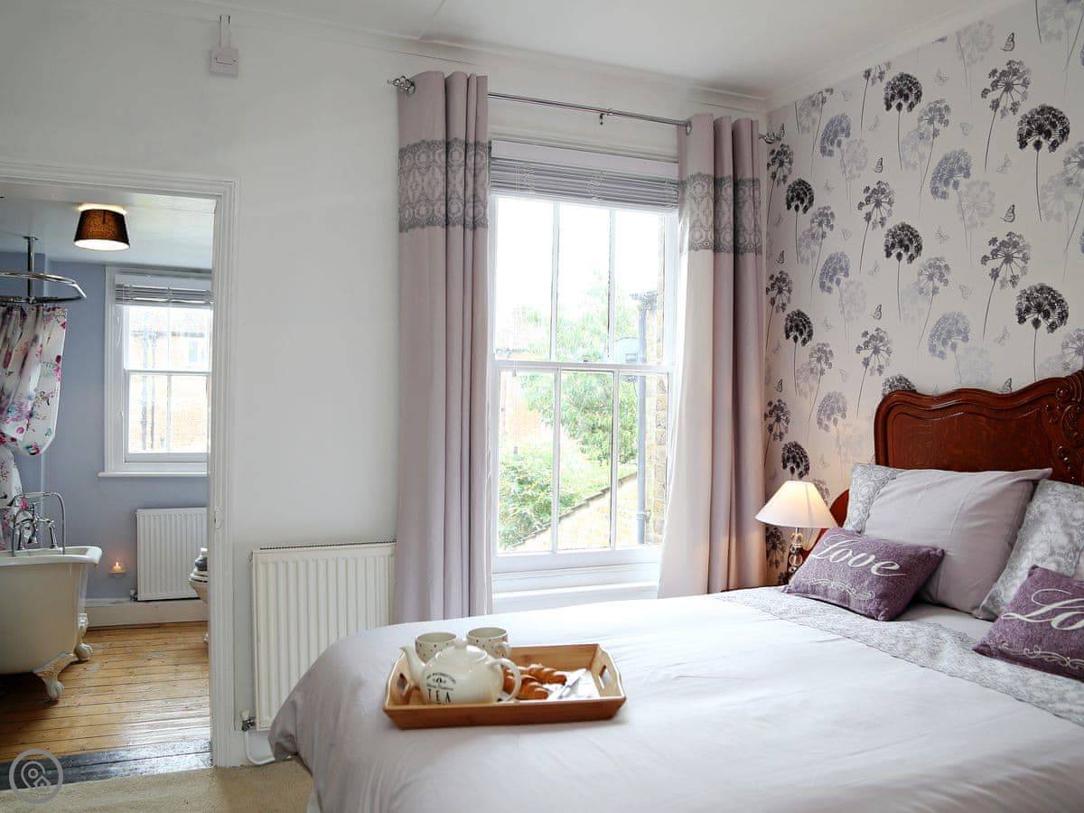 Inside, there's a woodburning stove in the living room. The main bedroom has a big double bed and a roll-top bath in the en-suite. The twin room uses the shower room downstairs.