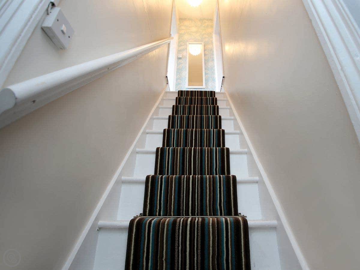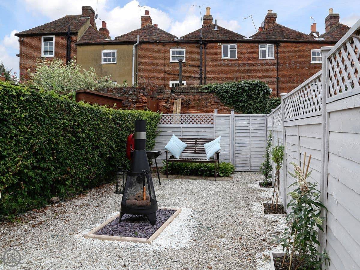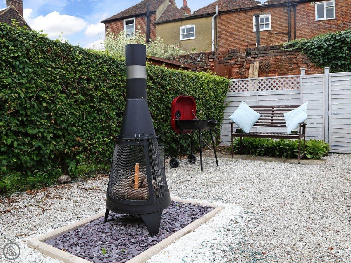 There's an enclosed garden at the back with a deck, a table, chairs and a barbecue. There's a chiminea too. The stairs are normal.