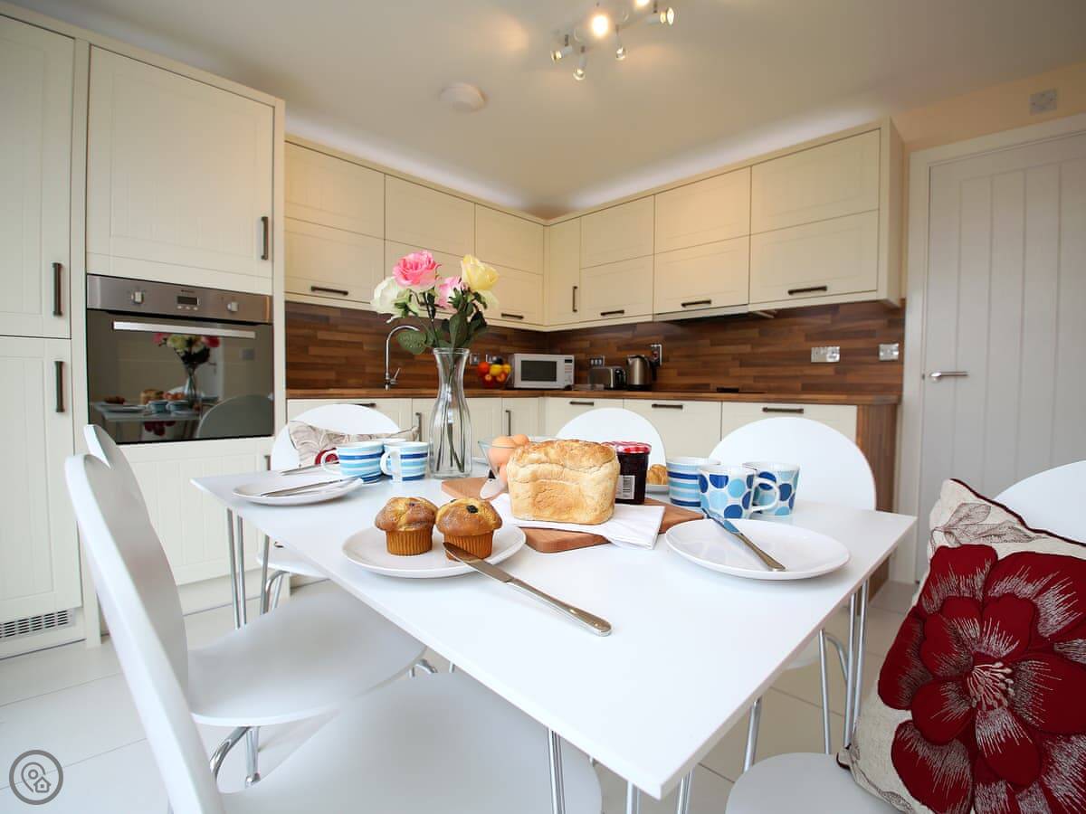 For facilities: it's got a dishwasher, washing machine, WiFi, TV, and parking. Bedding and towels are included. We can provide a cot and highchair. No pets, I'm afraid.