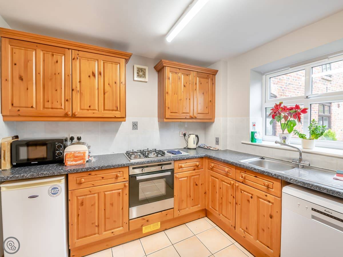 Practical things: there's parking right outside. You've got a washing machine, dishwasher, WiFi. Bedding and towels are included. We can provide a cot and highchair. There's a garden with a BBQ. Sorry, no pets.
