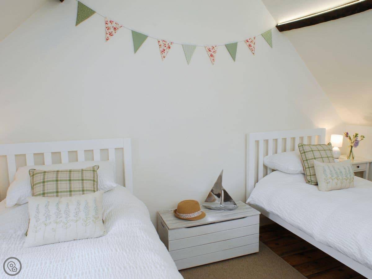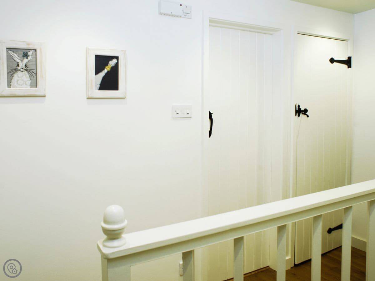 It sleeps four. Two bedrooms, one bathroom. It's got a 5 Star rating, so it's comfortable and well-finished. The stairs to the second bedroom are cottage stairs, so watch your head.