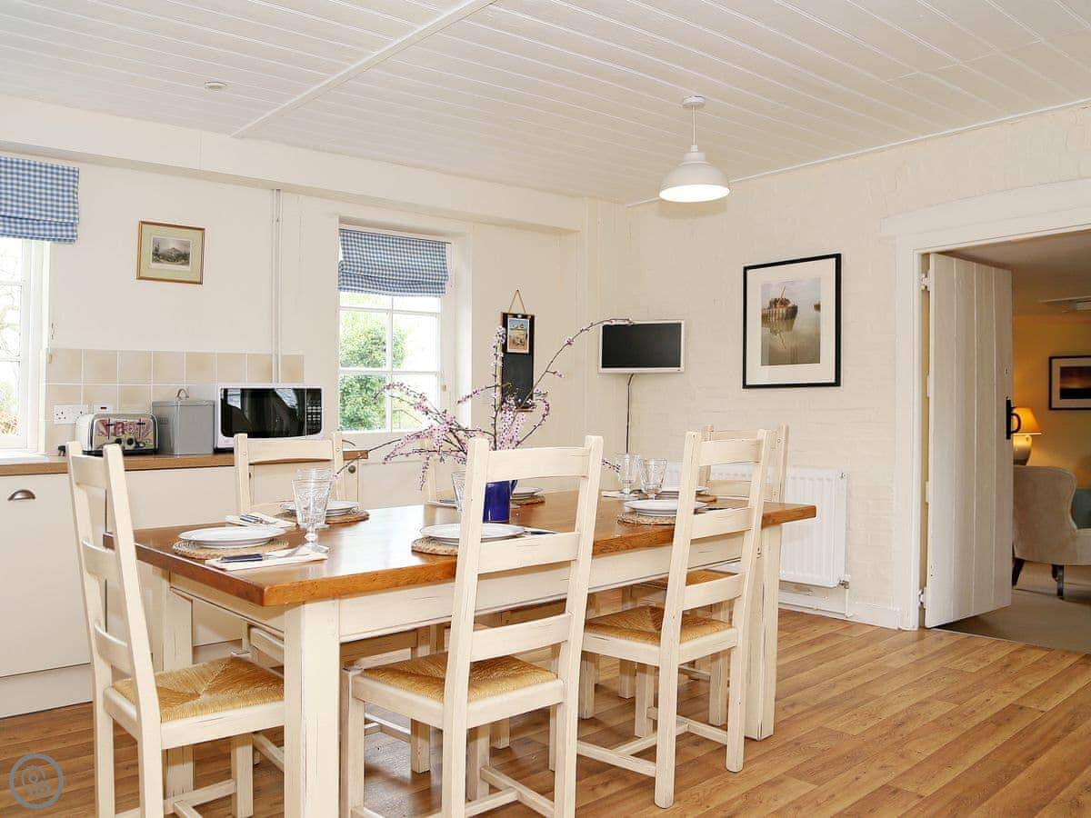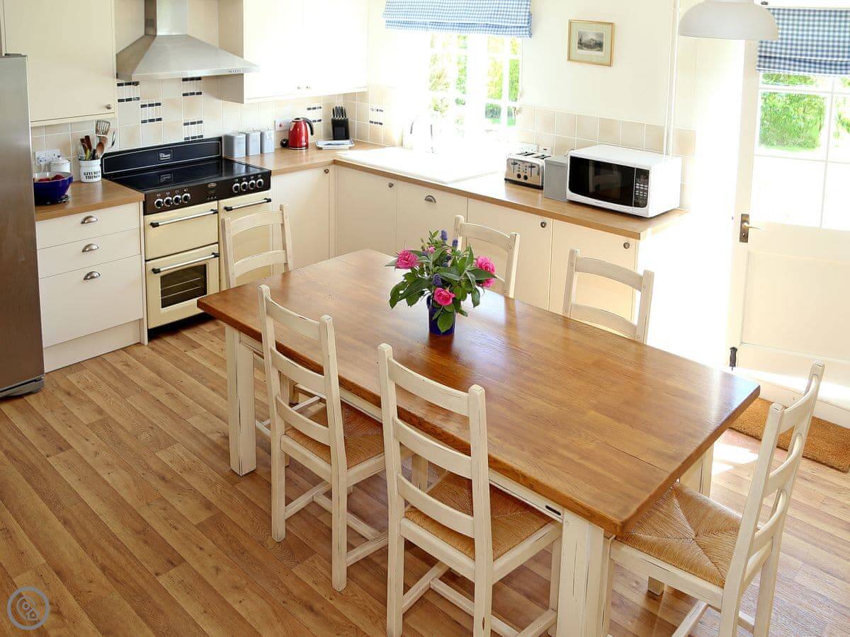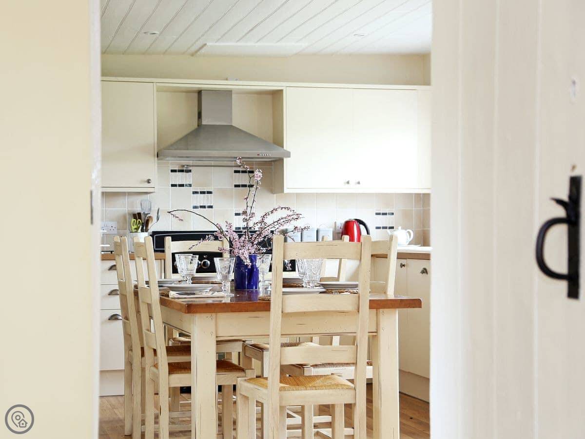It sleeps six, with three bedrooms and two bathrooms. It's got a 4 Star rating, which means it's comfortable and well-equipped. The kitchen is a good size and leads out to the garden. The garden faces south, gets the sun all day, and it's fully fenced, which is good if you're bringing a dog. We allow one well-behaved dog.