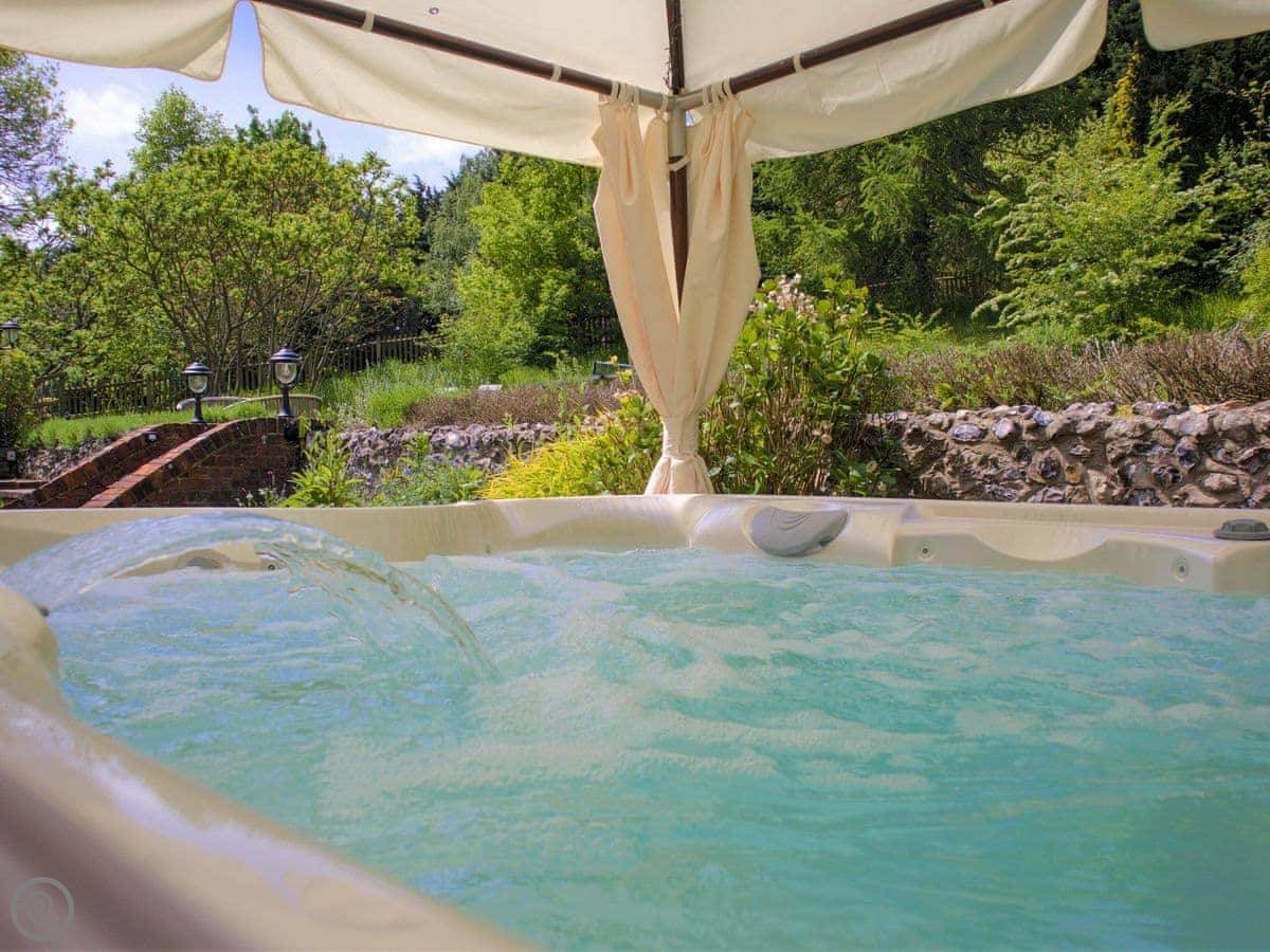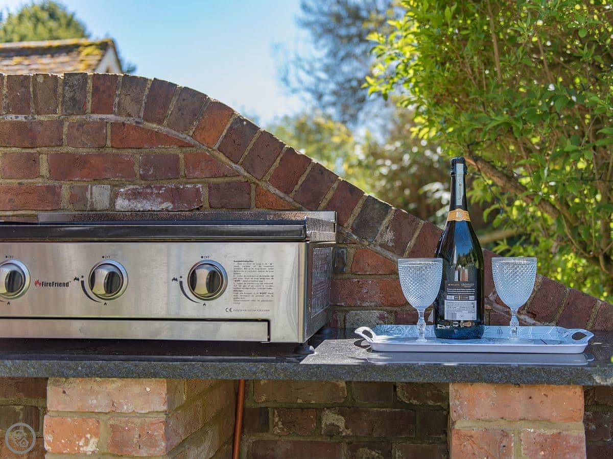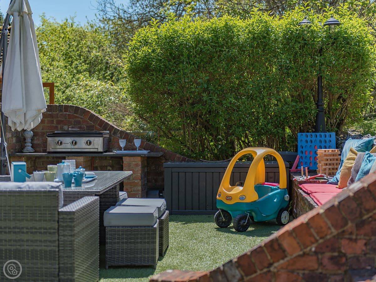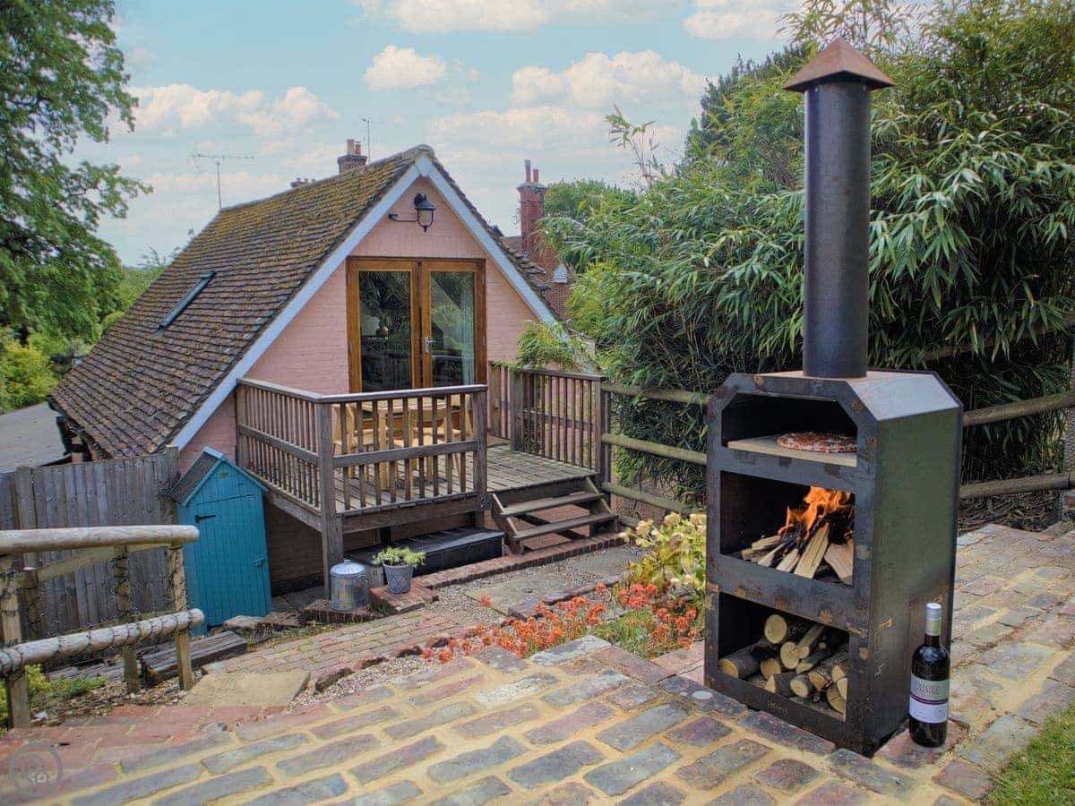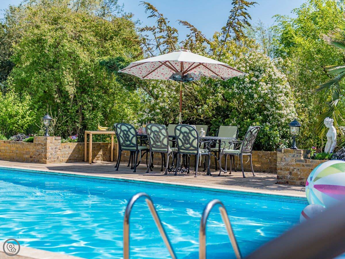 The garden has a heated swimming pool, a hot tub, a table tennis table, and a wood-fired pizza oven. There are two barbecues, one gas and one coal. The garden is enclosed.