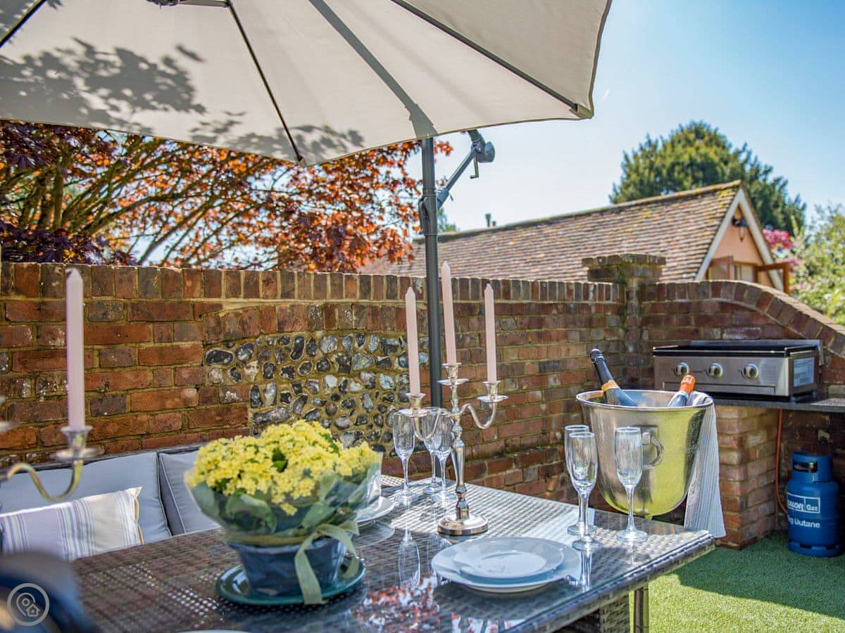 The Manor Coach House is in Shalmsford Street, near Canterbury. It's a detached coach house in the grounds of the main manor, which is very old. You've got your own garden, about an acre.