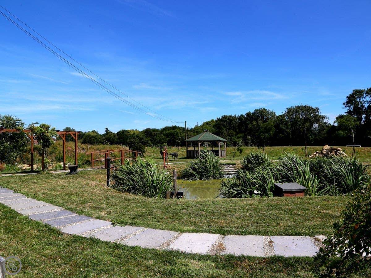 The farm grounds are nice to walk around. There's a children's play area and a pond, but the pond is not fenced, so you need to keep an eye on kids. The views from up here are good. You're high on the Kent Downs, so you look out over farmland.