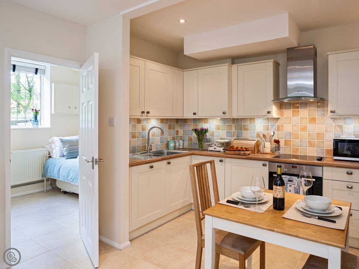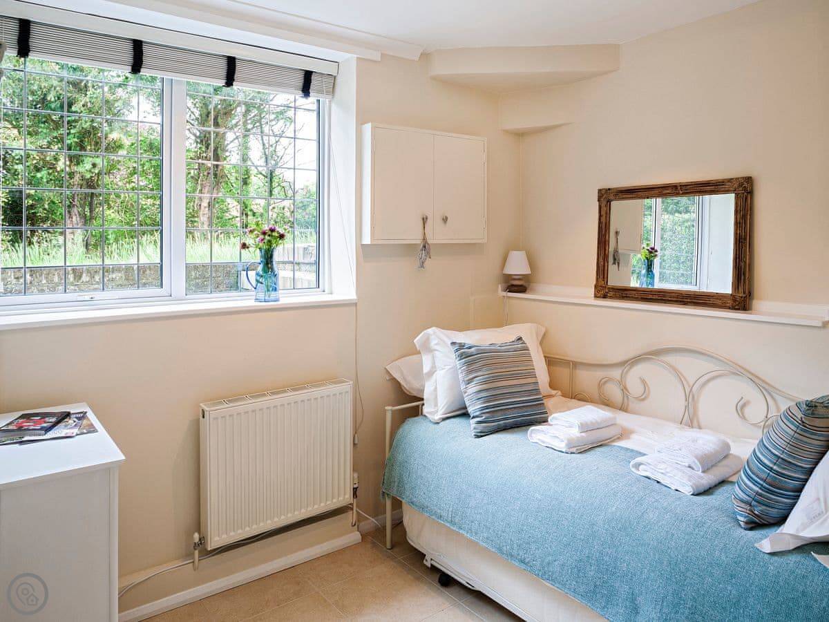 It sleeps four. Two bedrooms, one bathroom. One's a double, the other has a single bed with another one that pulls out from underneath it. It's got a 4 Star rating, which means it's comfortable and well-kept. Everything's on the ground floor.