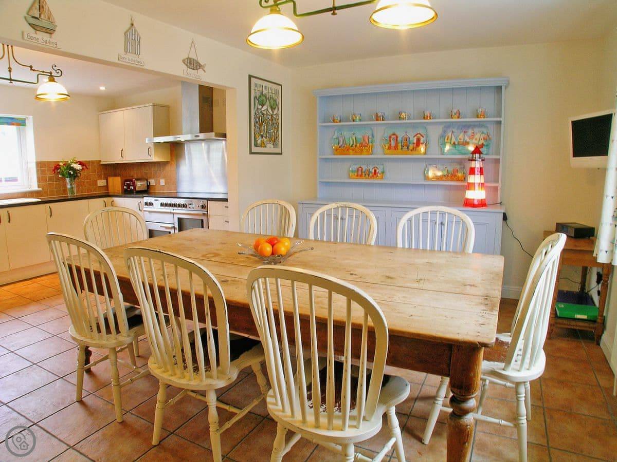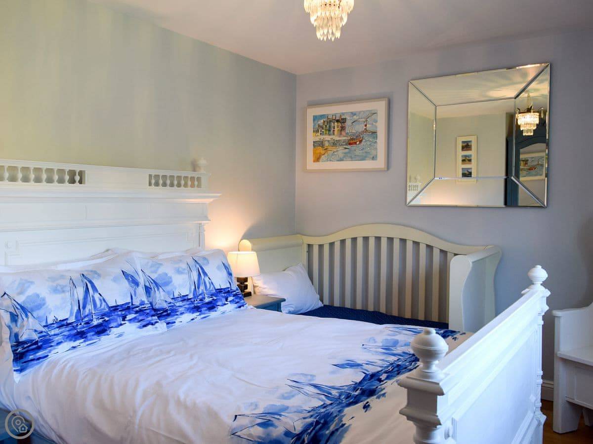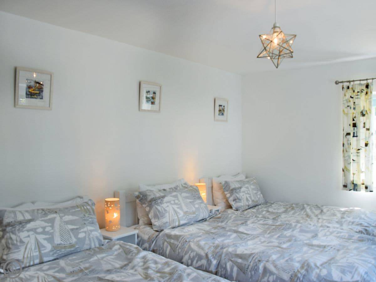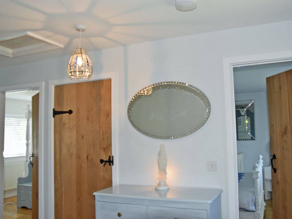 It sleeps nine people. There are four bedrooms and two bathrooms. It's got a 5 Star rating. It's a comfortable, well-equipped place. The stairs are normal house stairs, not steep cottage ones.