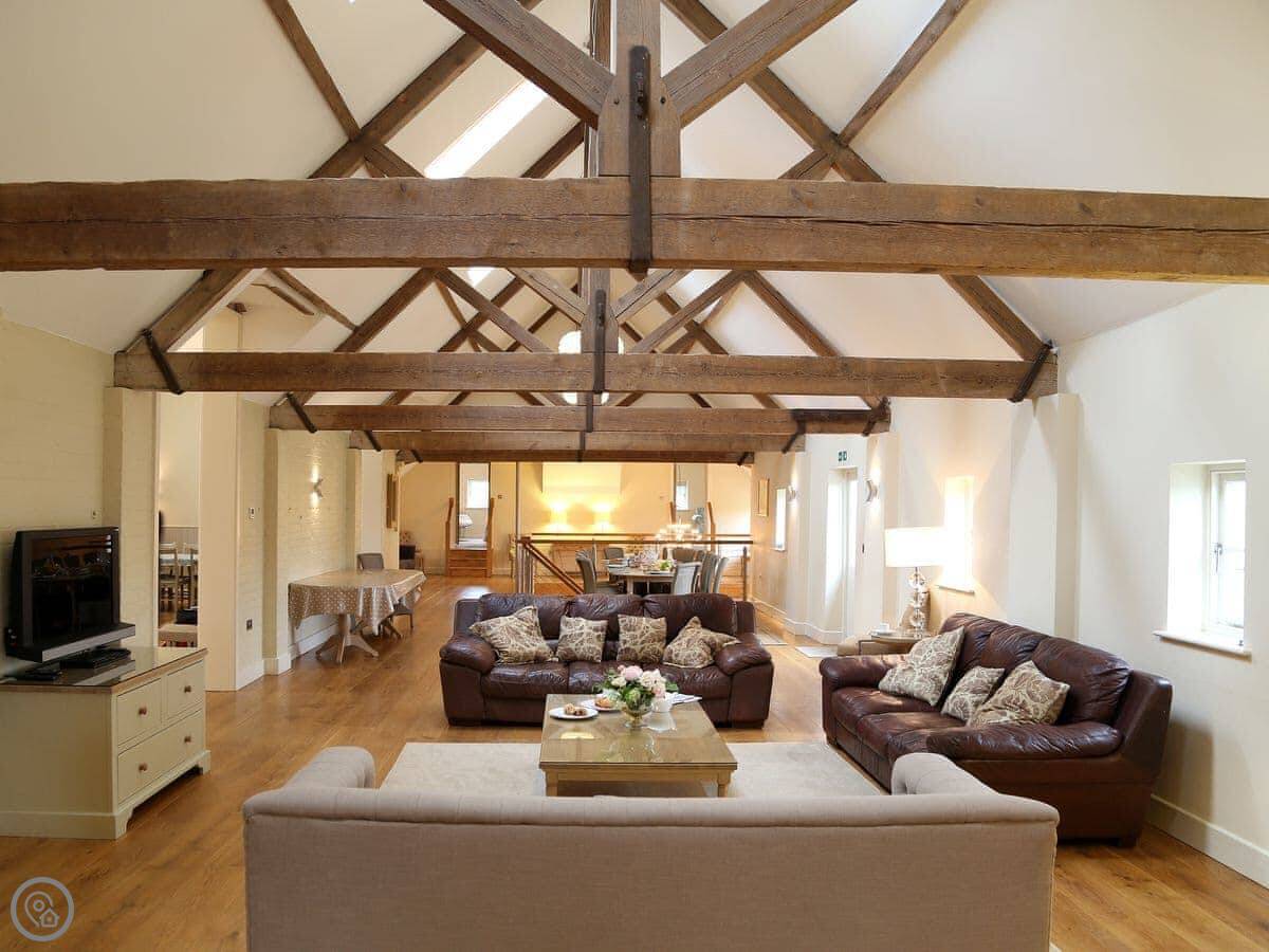 Amazing contemporary barn with wonderfully spacious rooms and lovely views over traditional hop gardens and farmland, this fabulous building will make a breathtaking place to celebrate that special family occasion. With light and airy accommodation on two floors, double height ceilings, designer lighting and oak flooring, it really is a special place to stay. There is a private outdoor heated swimming pool, a tennis court and lots of space for all, with a particular feature being the first floor balcony that leads straight from the main reception area, providing stunning views over the surrounding countryside. If you are looking for a really special location, look no further you will not be disappointed!