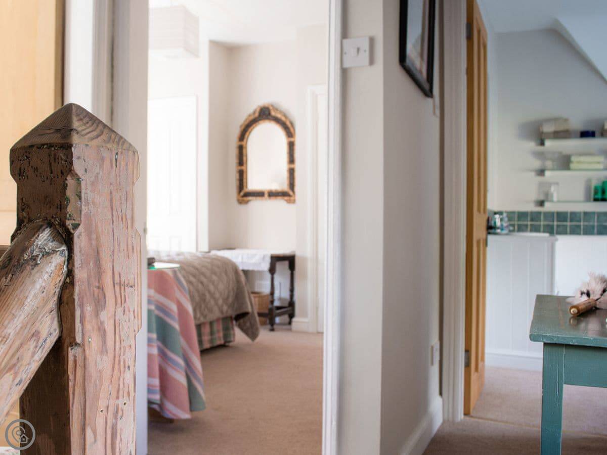 It sleeps four. Two bedrooms upstairs, one bathroom. It's got a 4 Star rating, which means it's comfortable and well-equipped. The stairs are cottage stairs, so they're a bit steeper than modern ones. There's a stairgate at the top.