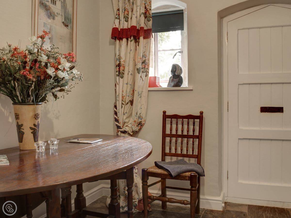 There's a pub directly opposite. They do food and have a decent choice of drinks. The garden is enclosed, so it's safe for kids or a dog. You get views over the village and fields from the windows.