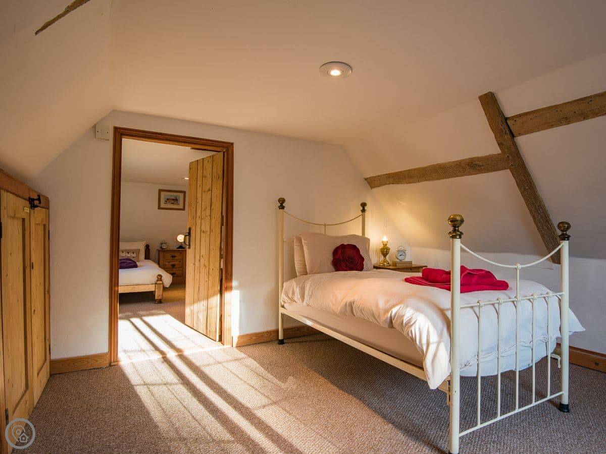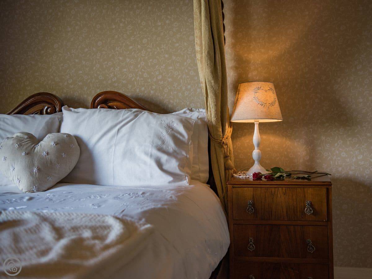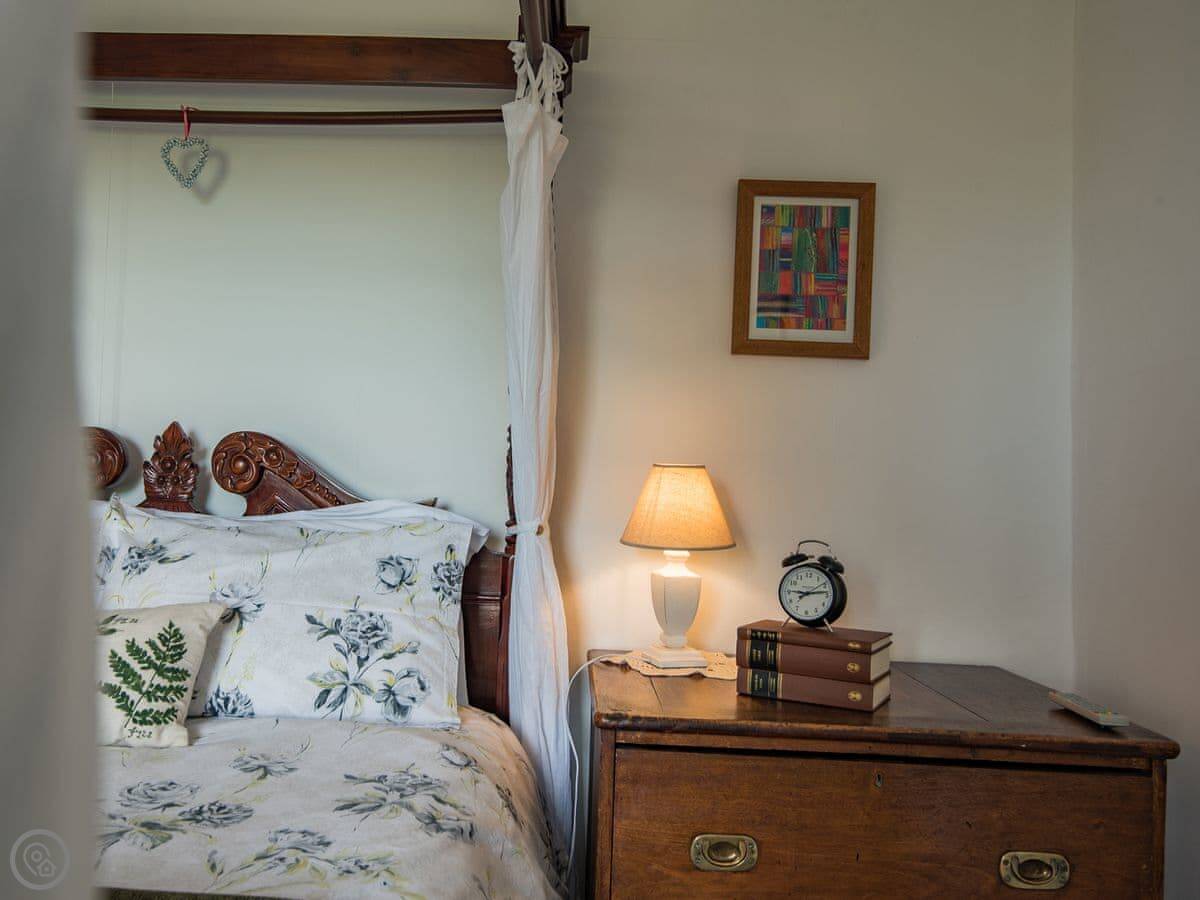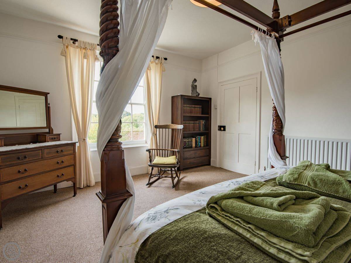 It sleeps nine. Five bedrooms, two bathrooms. Two of the beds are four posters. It's got a 4 Star rating, which means it's comfortable and well-equipped.