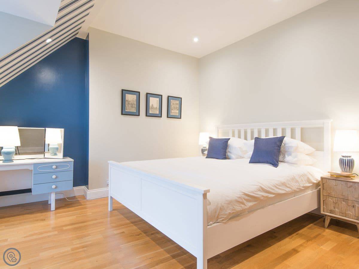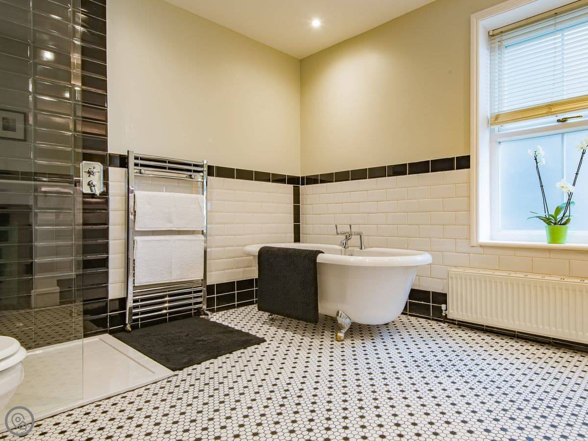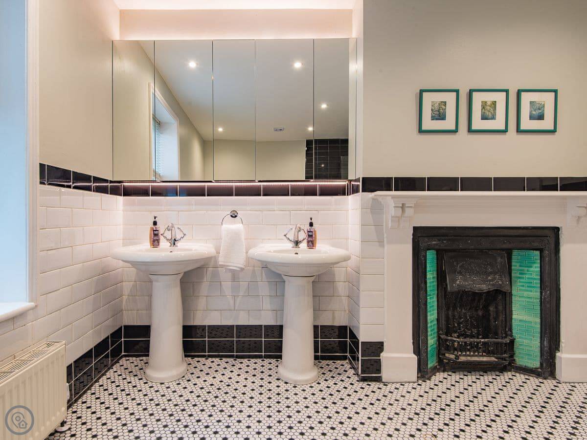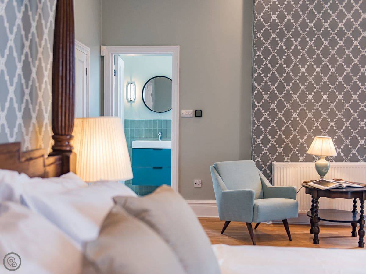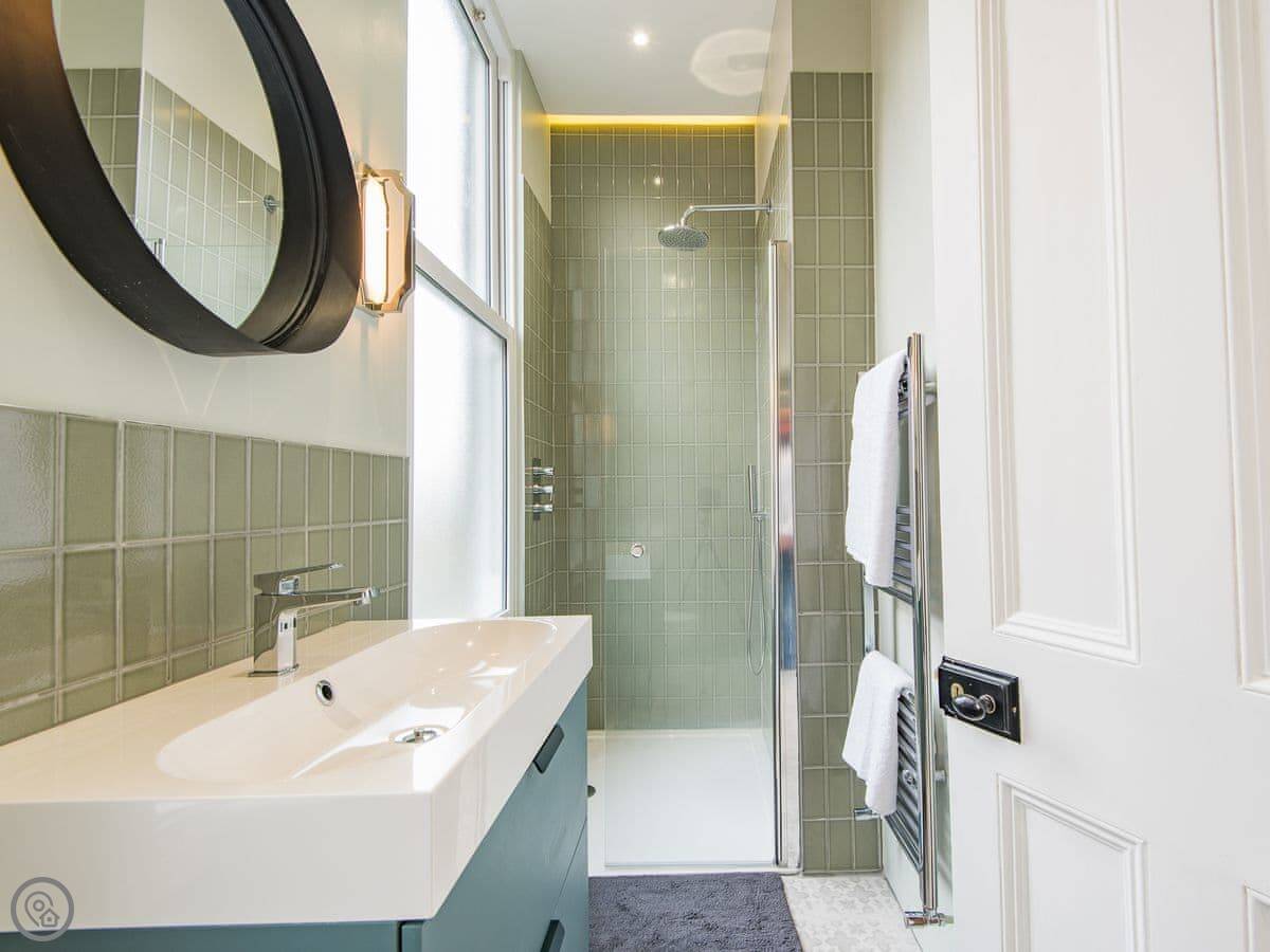 Six bedrooms are spread over the upper floors. One has the turret, so you get a little reading nook up there. There are side sea views from a couple of rooms. The sea is only a few hundred yards away. All the bathrooms have underfloor heating, which is nice.