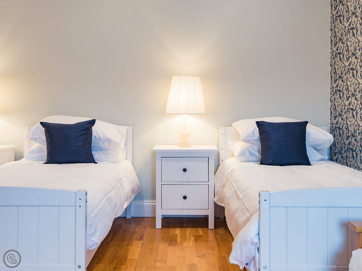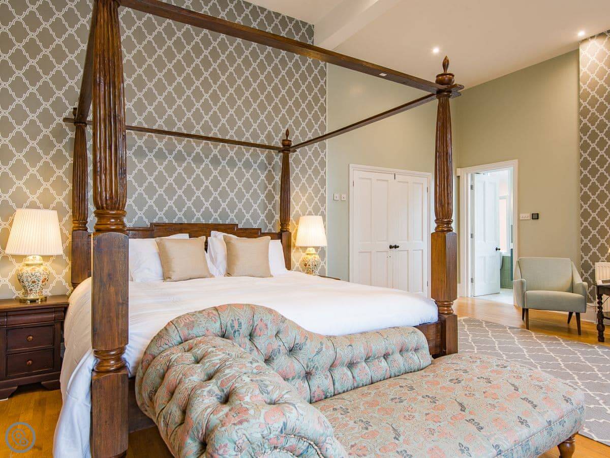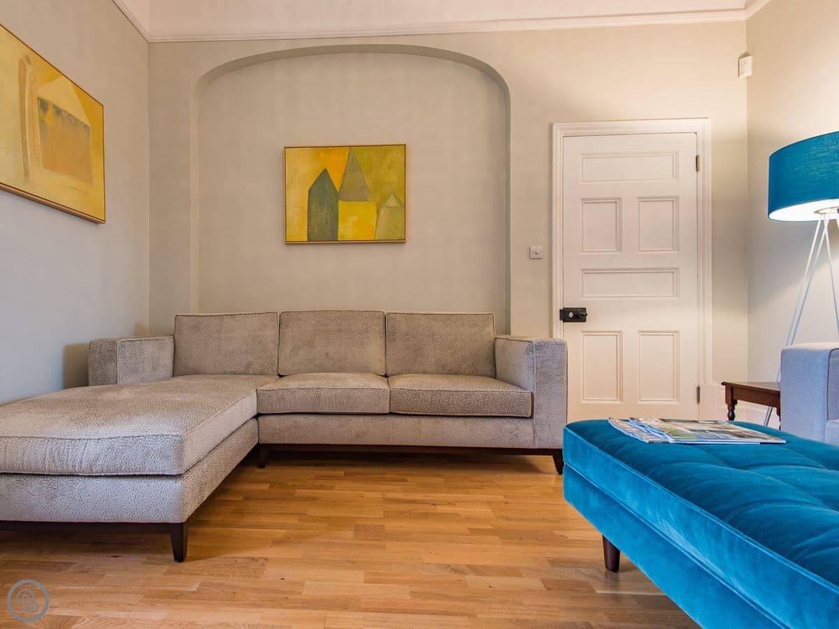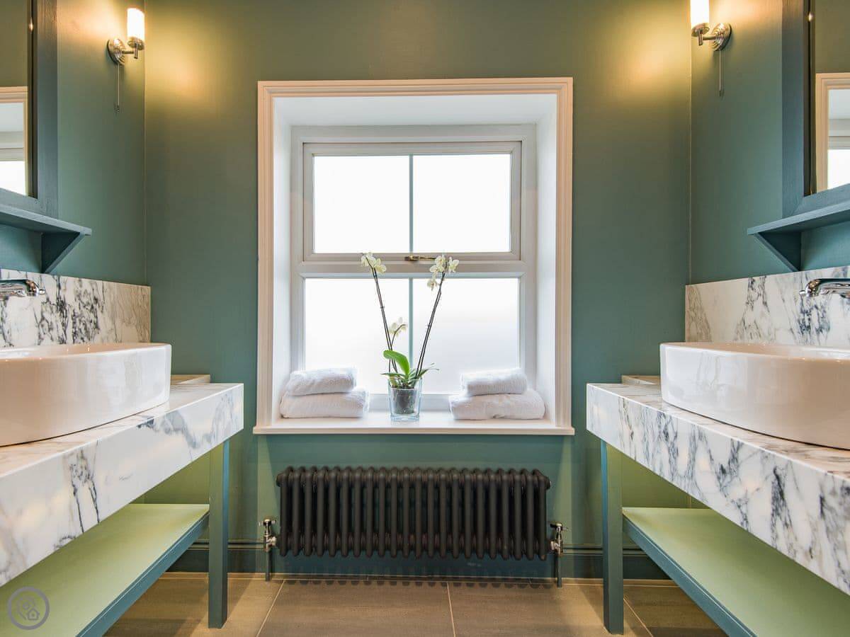 Six bedrooms are spread over the upper floors. One has the turret, so you get a little reading nook up there. There are side sea views from a couple of rooms. The sea is only a few hundred yards away. All the bathrooms have underfloor heating, which is nice.