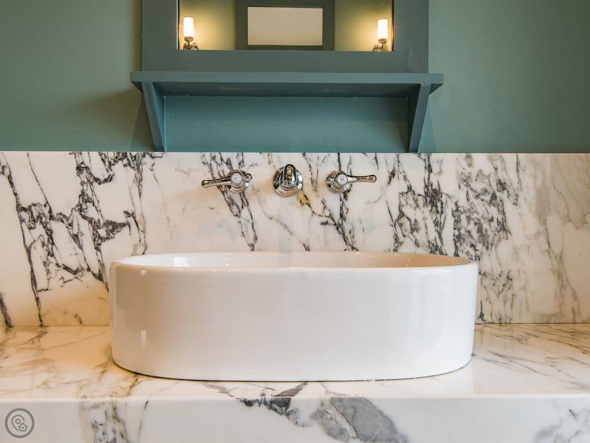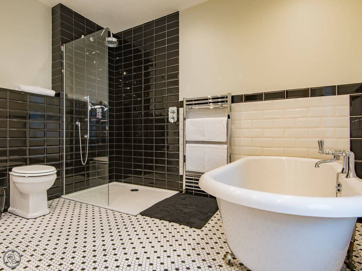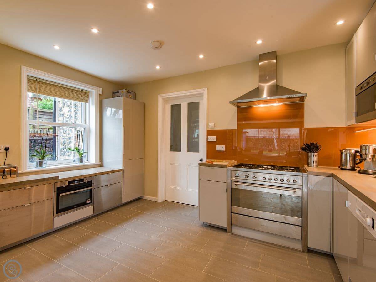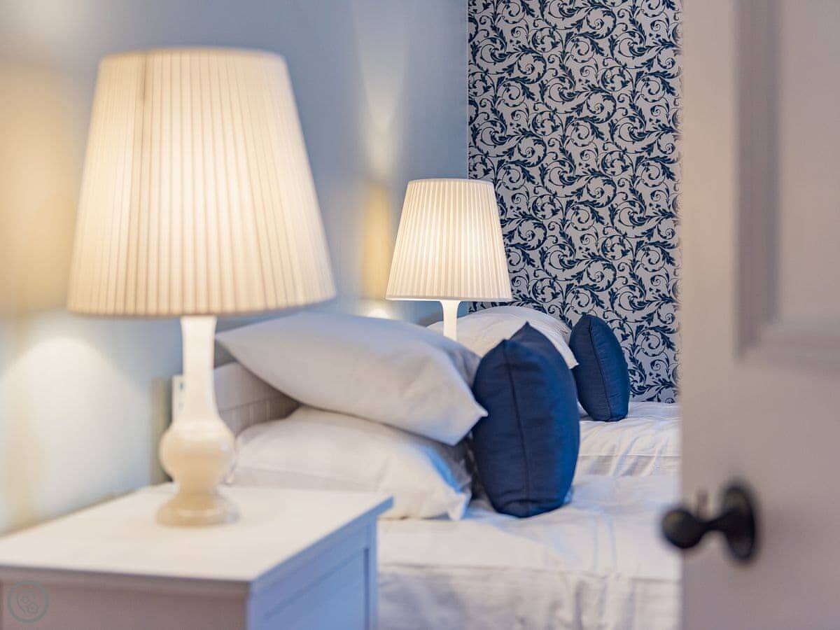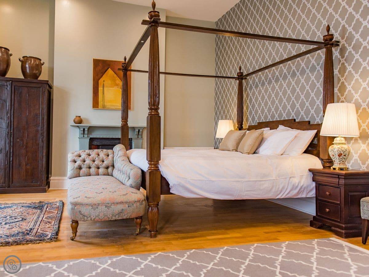 Six bedrooms are spread over the upper floors. One has the turret, so you get a little reading nook up there. There are side sea views from a couple of rooms. The sea is only a few hundred yards away. All the bathrooms have underfloor heating, which is nice.
