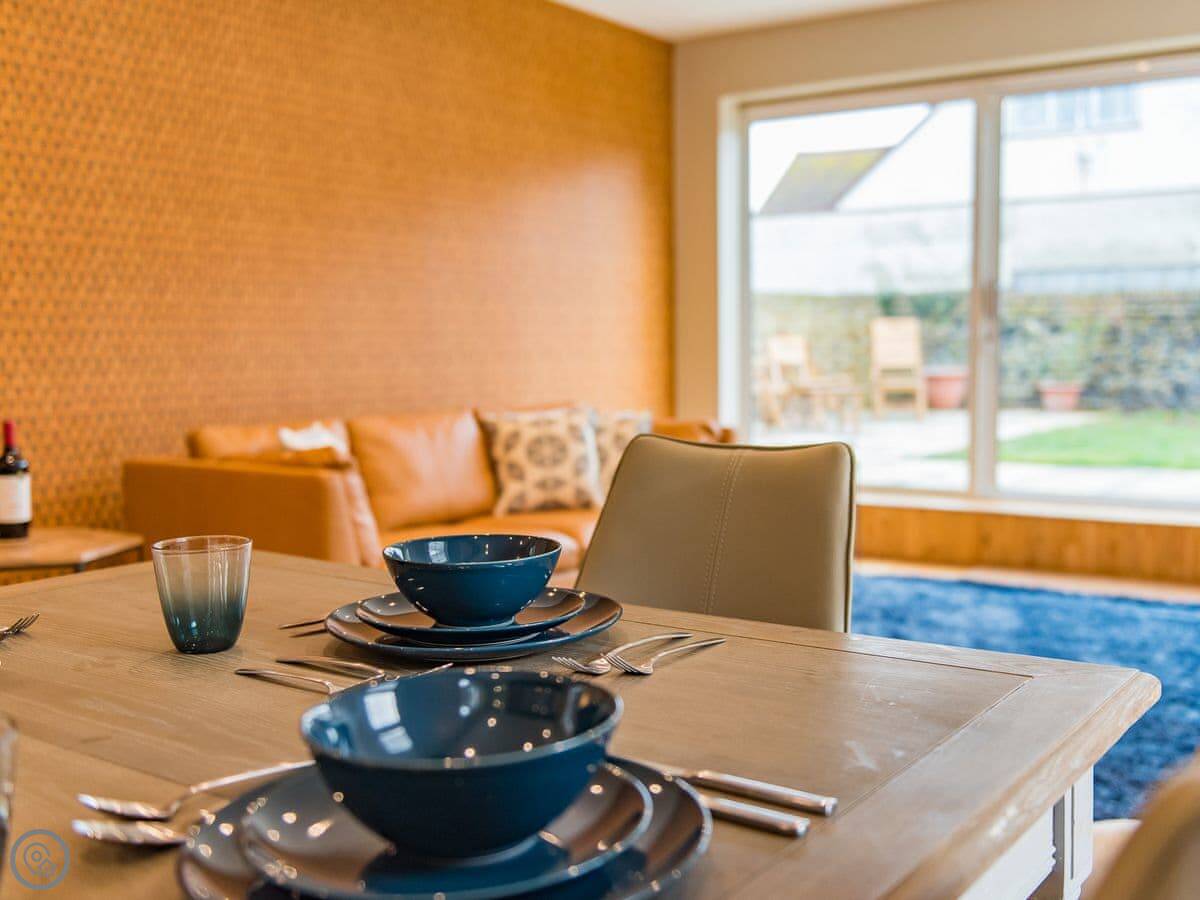 It takes two dogs. The garden is enclosed. There's parking on the drive for a few cars. All the usual stuff is there: WiFi, washing machine, dishwasher, cot and highchair if you need them. Bedding and towels are included.