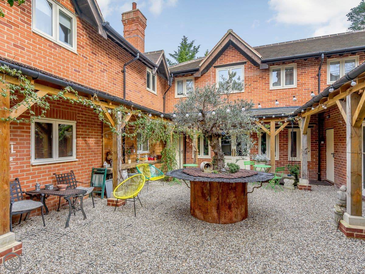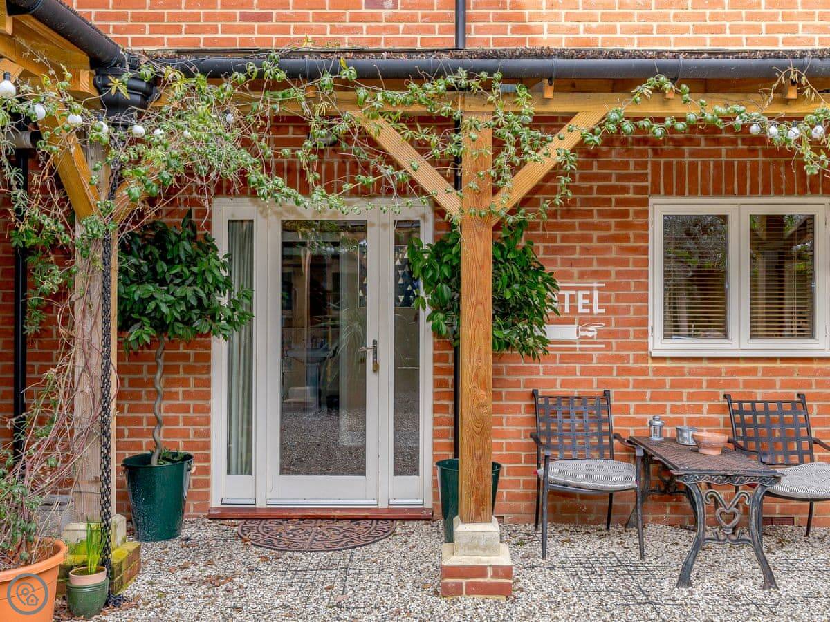 Kingsley Apartment is in the Eversley Centre hotel building in Hampshire. It's a ground floor apartment, so you come in from the shared courtyard.