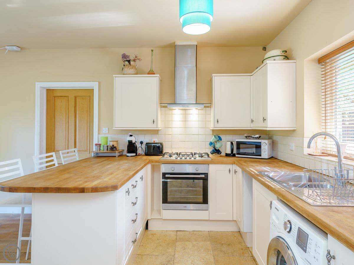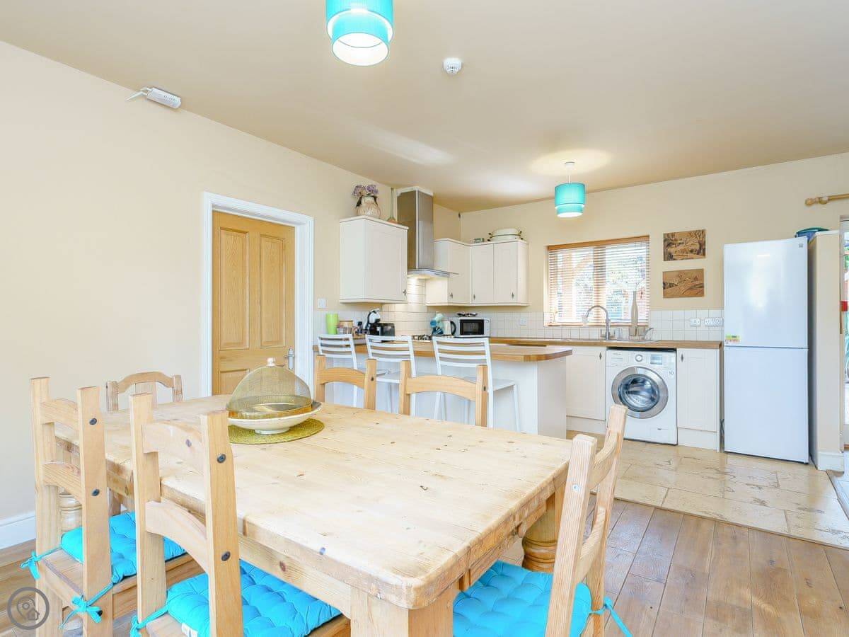 Inside, it's all there. Washing machine, dishwasher, WiFi. Bedding and towels are included. We can provide a cot and highchair.