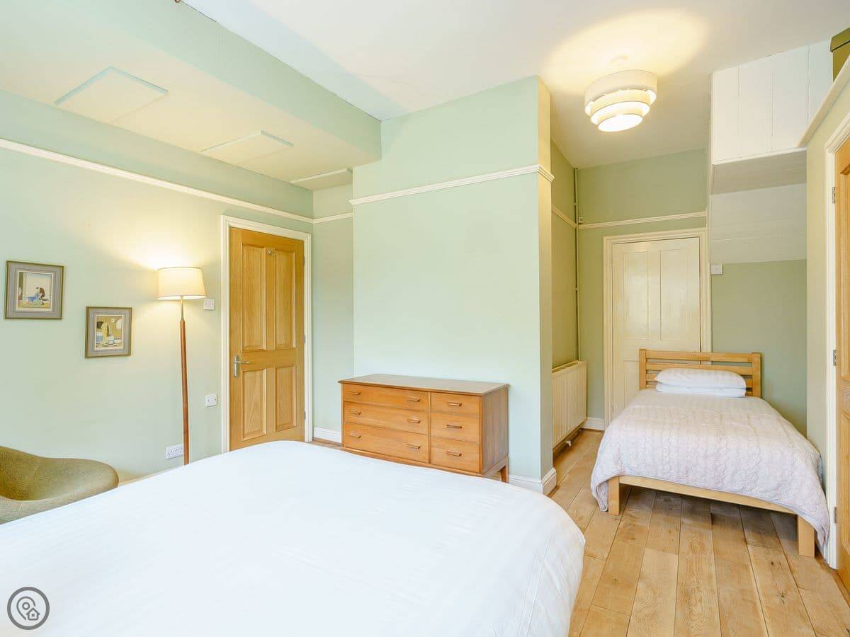 You get your own patio and a decent bit of enclosed garden out the back. There’s a barbecue. It’s safe for kids and dogs.
