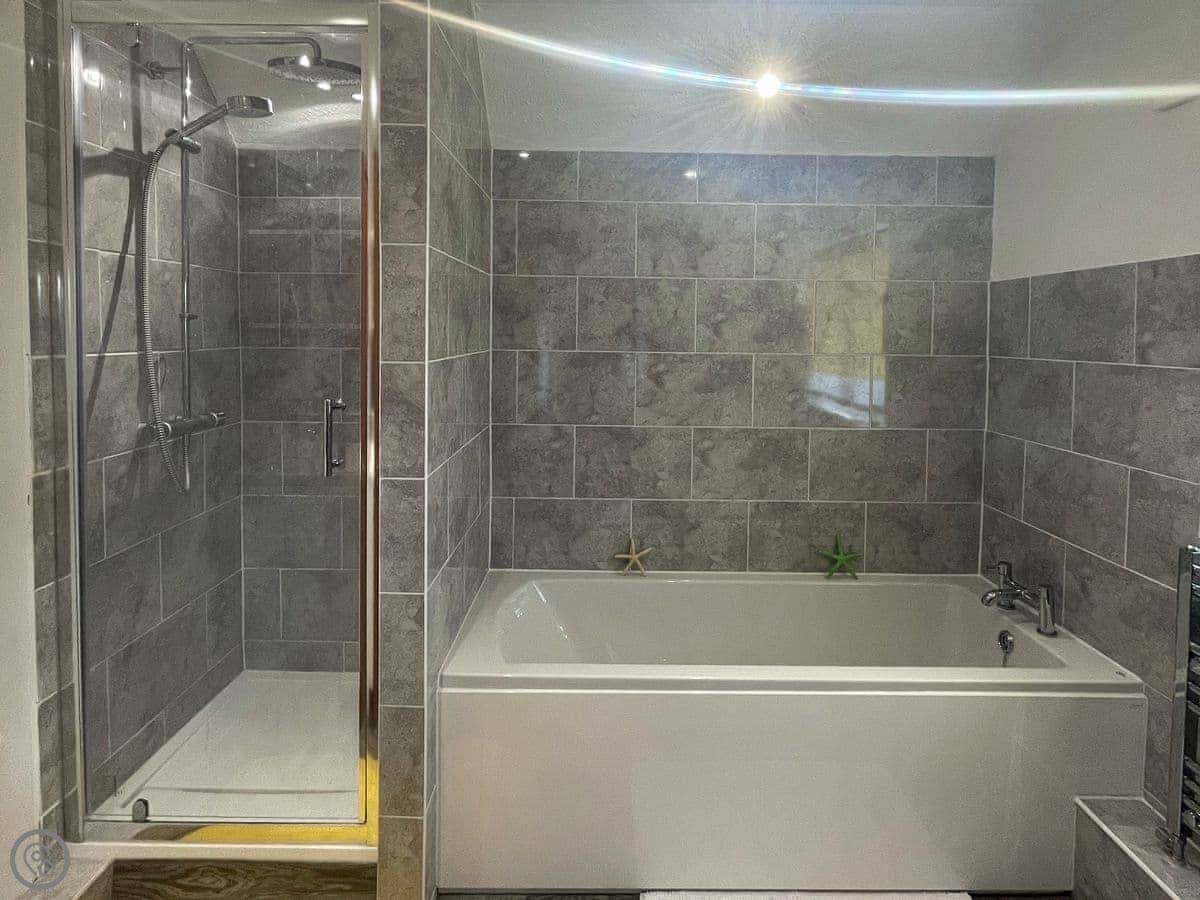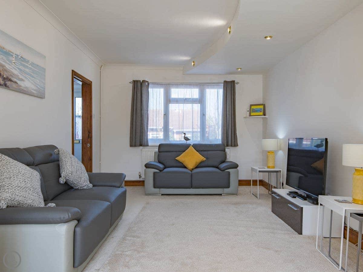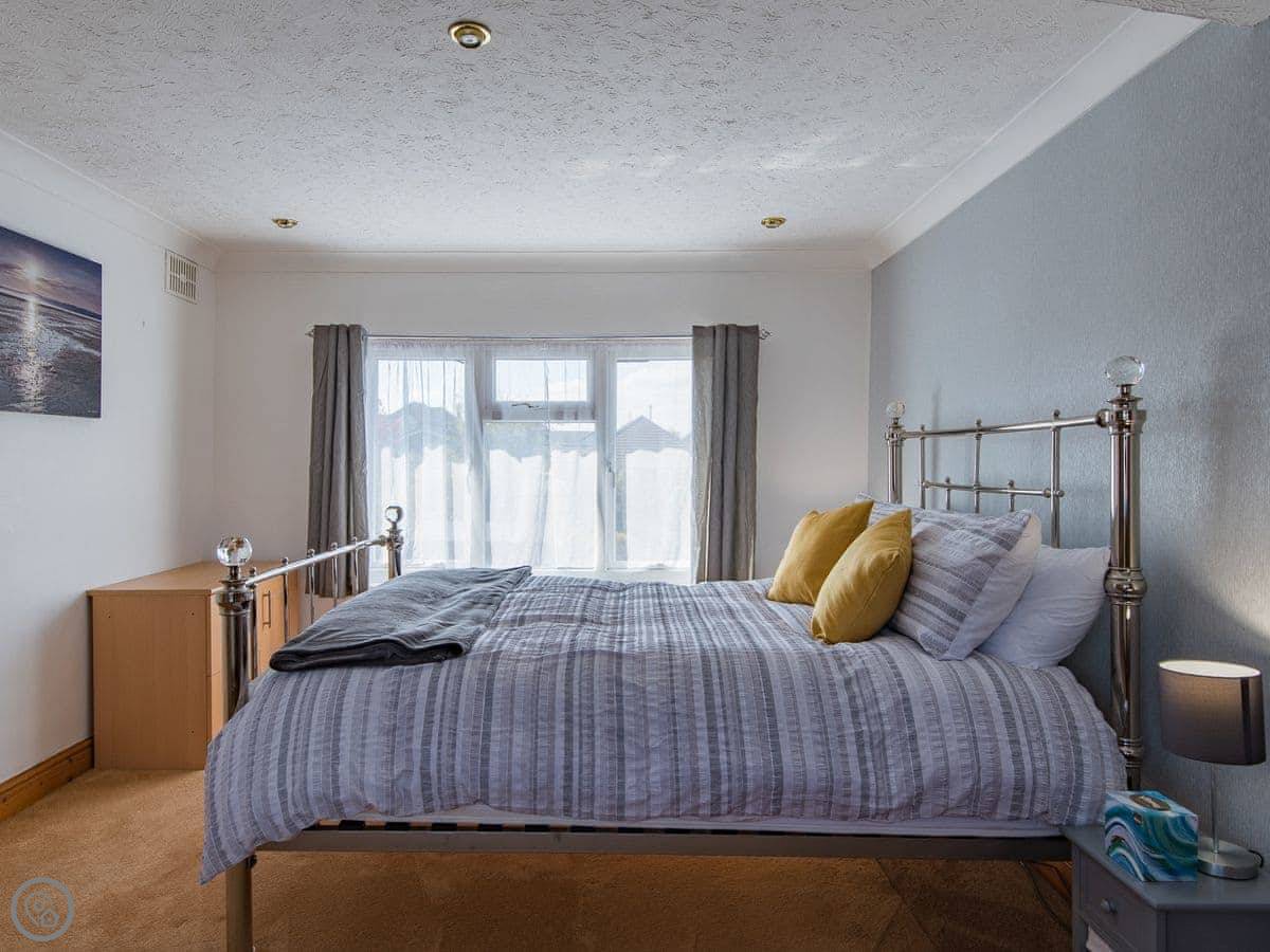 The beach is about a ten minute walk. You go down a footpath over the golf course and you're there. It's shingle. From there you can walk along the promenade into the town centre.