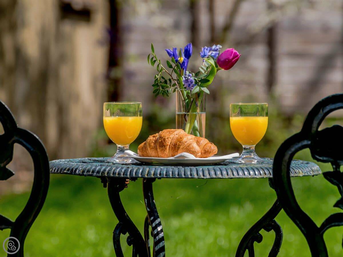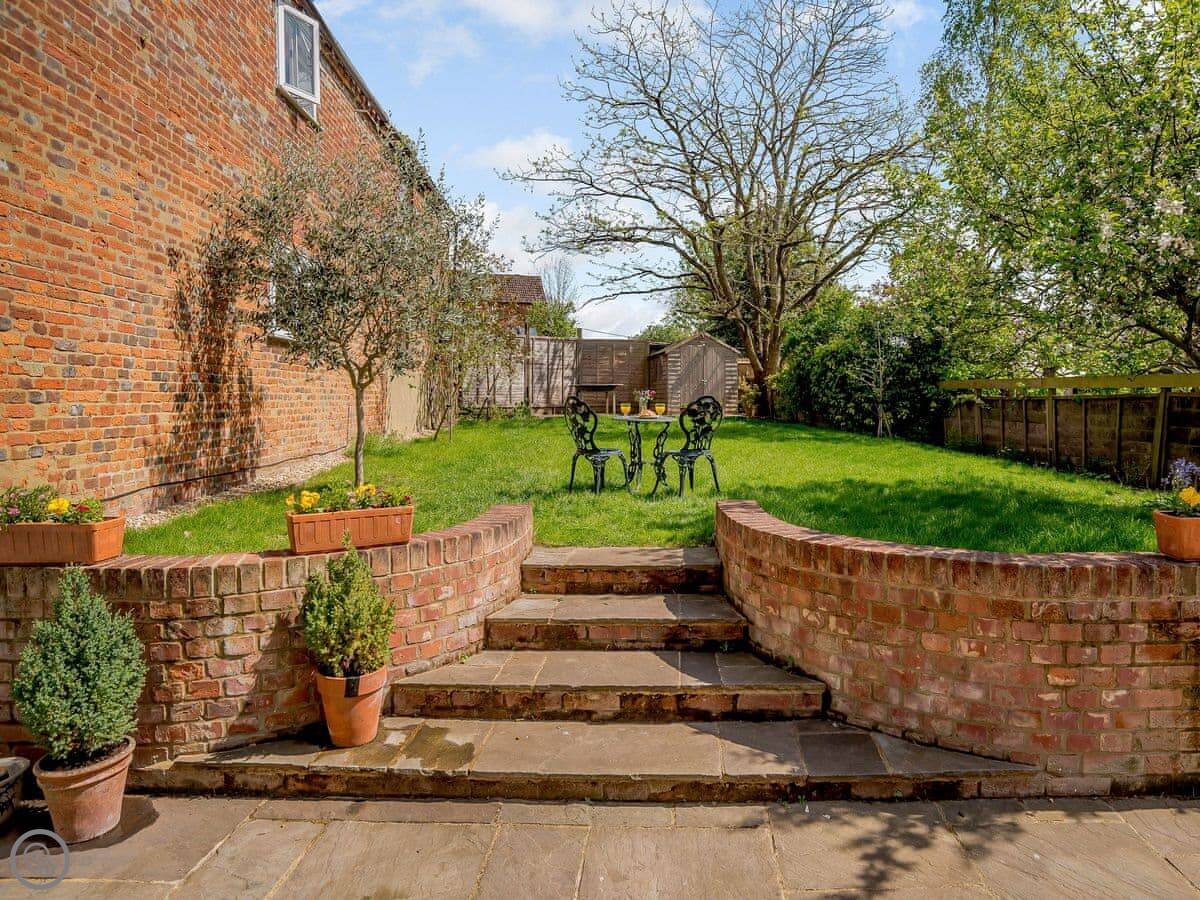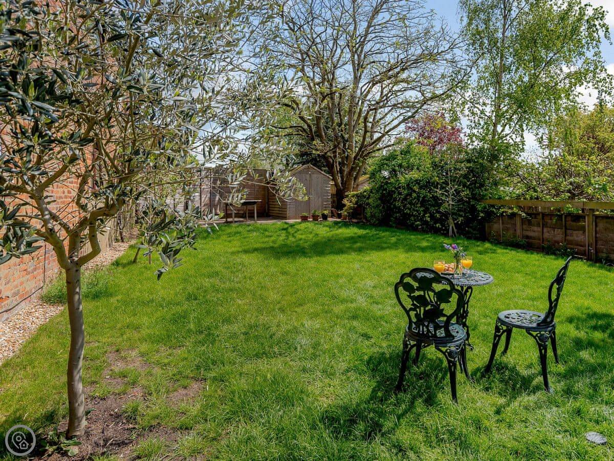 Outside, there’s a patio with a table and chairs for drinks in the sun. The garden is well sized and pleasant with a mix of established trees and new plants. If the sun’s shining, it’s a good place to sit and relax.