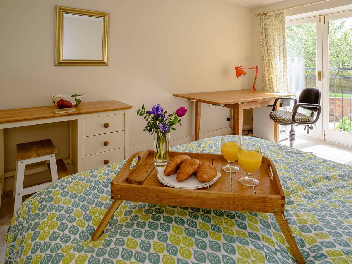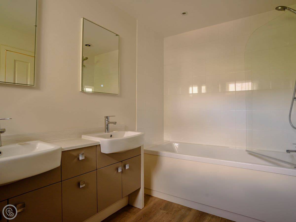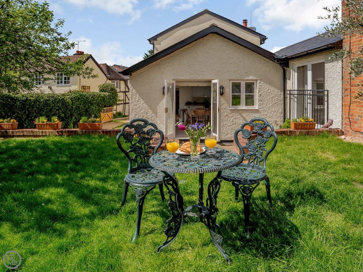 Outside, there’s a patio with a table and chairs for drinks in the sun. The garden is well sized and pleasant with a mix of established trees and new plants. If the sun’s shining, it’s a good place to sit and relax.