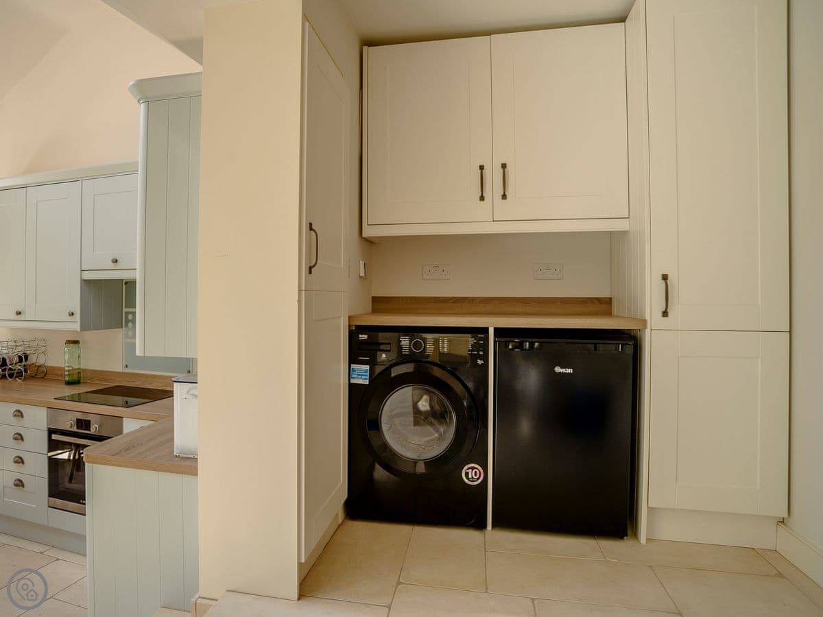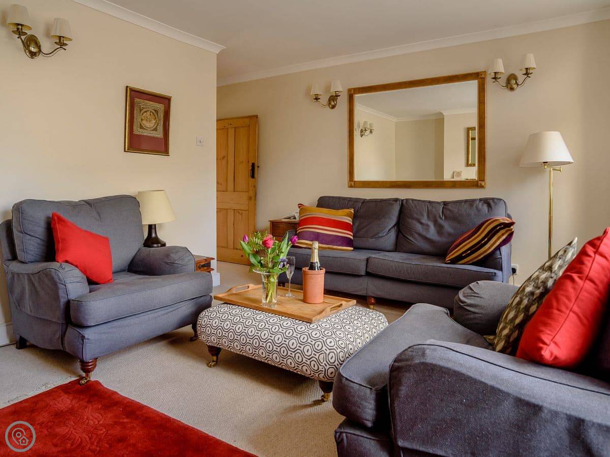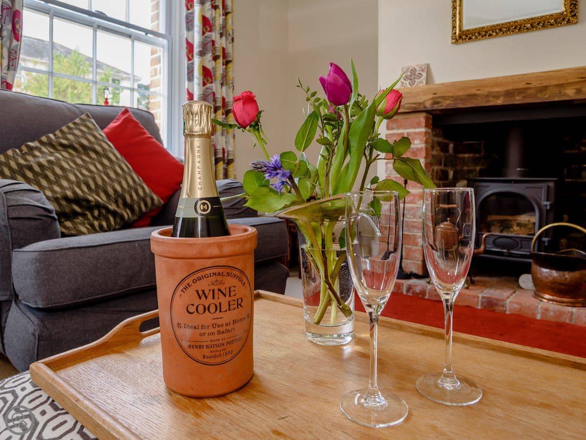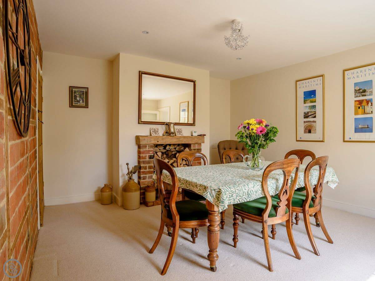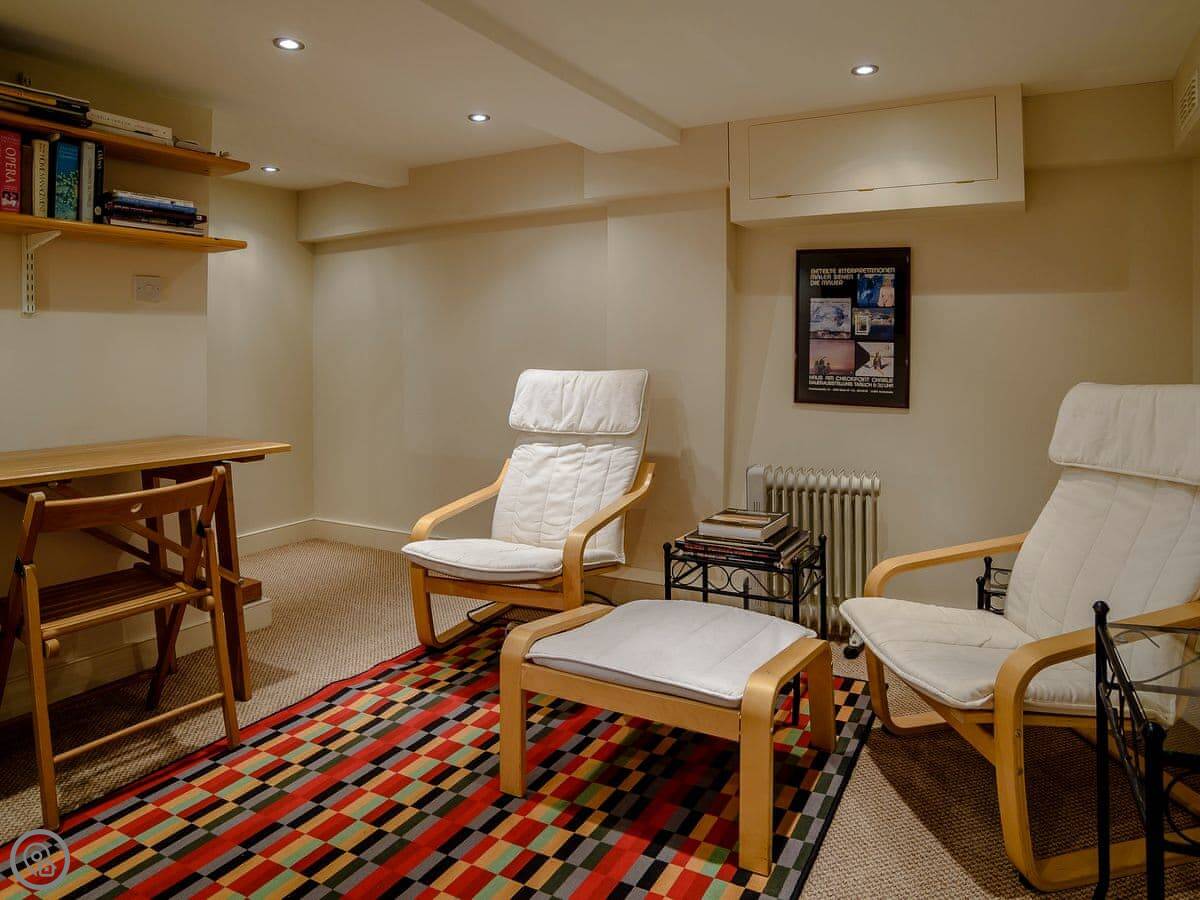 Relaxing, dining and socialising is well catered for. The dining room is spacious and uncluttered with a table for six. The living room, at the front of the house, has snug little sofas and chairs for chatting with a tea or resting after a walk in the North Wessex Downs. The wood burning stove will provide heat and ambiance to allow conversation to continue into the night. Downstairs, the cellar has been converted into a snug room with a large Smart TV.
