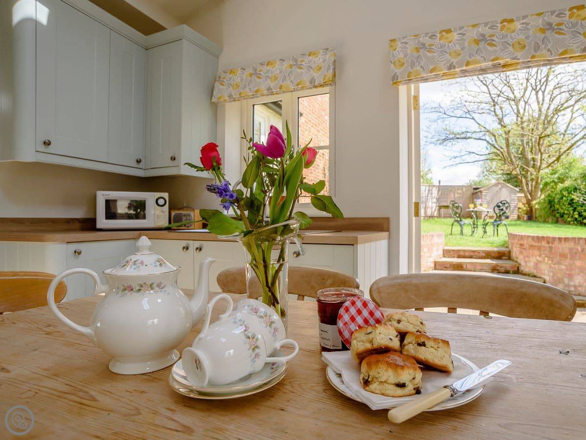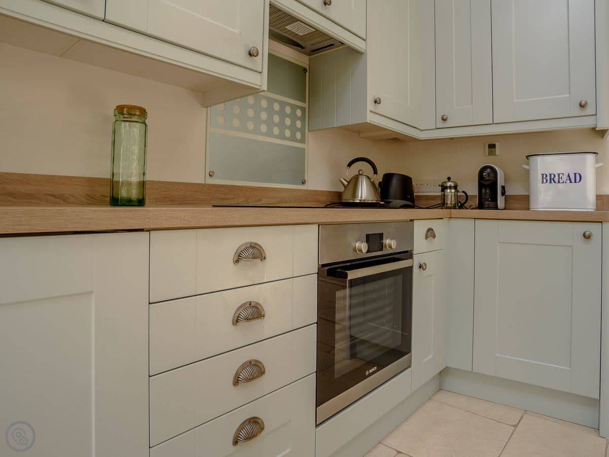 Whitchurch Cottage has been refurbished to a very high standard, mixing fresh modernity with period details. Antique furnishings and little adornments are featured alongside a brand new kitchen, a Jack n’ Jill wet room and underfloor heating. The cottage is entered from the patio at the back into the welcoming and sunny kitchen with its gorgeous natural stone flooring. The kitchen is airy and bright and will have everything you need for your stay, including possibly a French-themed gift from the owners .