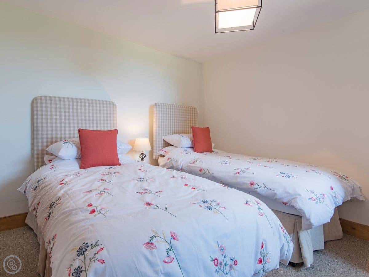 The barn sleeps six. There are three bedrooms and they all have their own bathrooms. That's useful. It's rated 4 Star, which is accurate. It's been done up well.