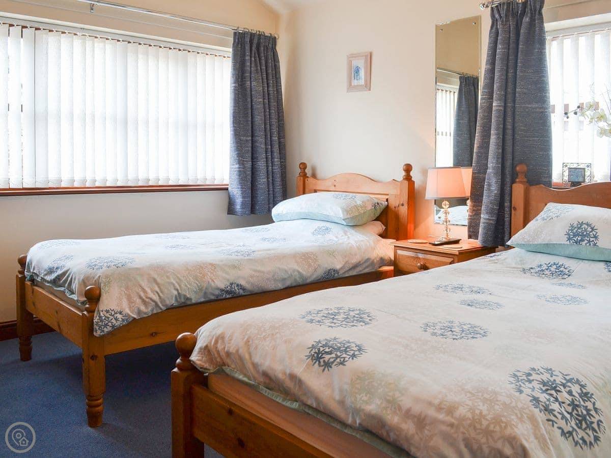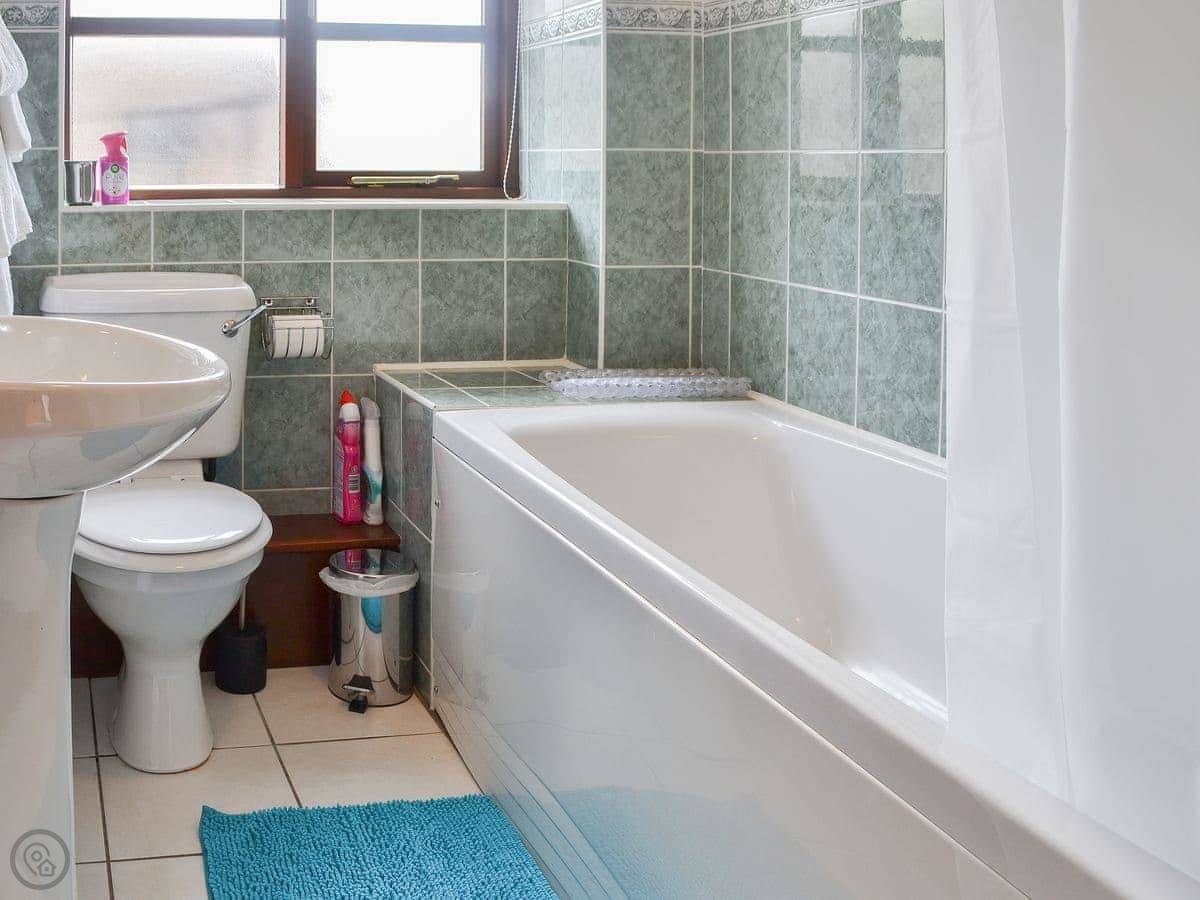 It sleeps six. Three bedrooms, two bathrooms, which is handy. It's got a 4 Star rating. It's comfortable and clean, everything works. The garden is enclosed, which is good if you've got kids. You can park right outside.