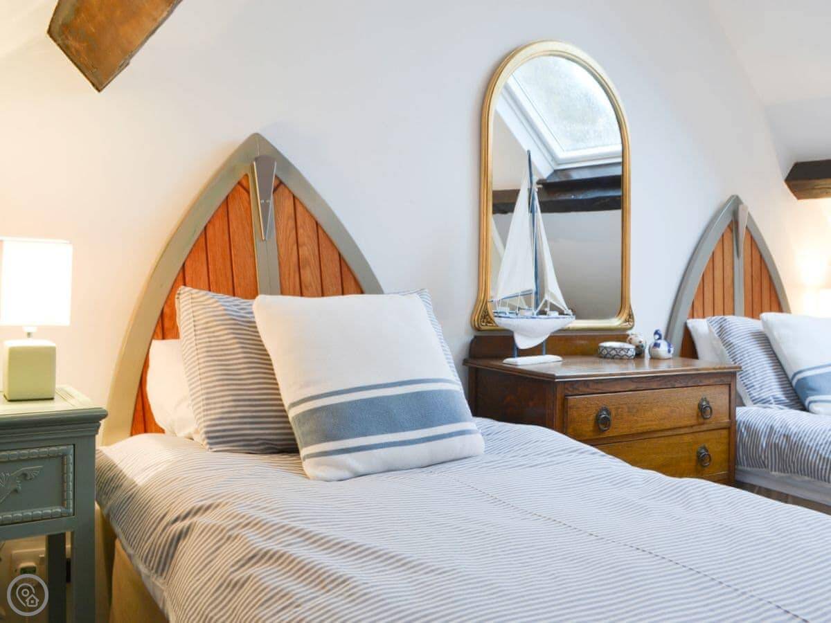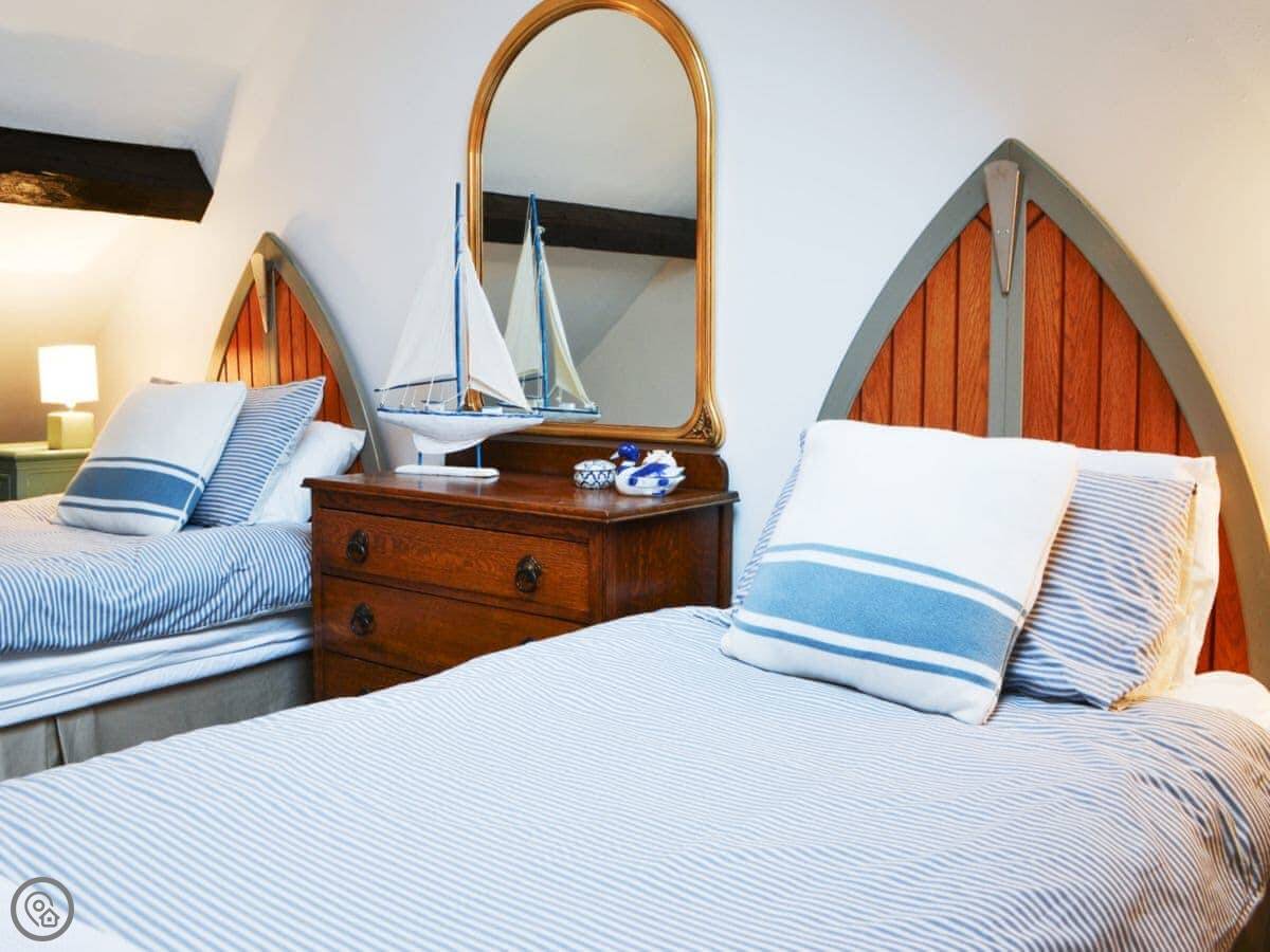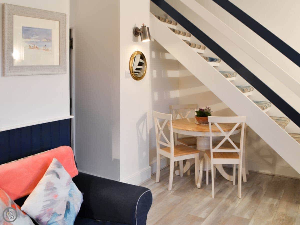 Clutter Cottage is in Widdrington, Northumberland. It’s a two-bedroom place, sleeps four. There’s one bathroom with a walk-in shower, and a separate downstairs loo. It’s got a 4 Star rating. It’s tidy and modern inside, with exposed beams. The stairs are open-tread, so watch your step.