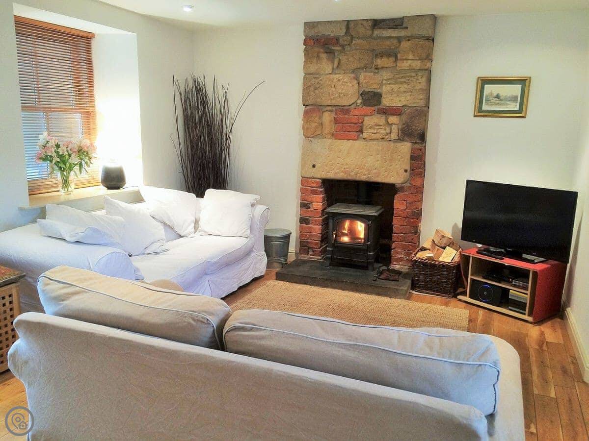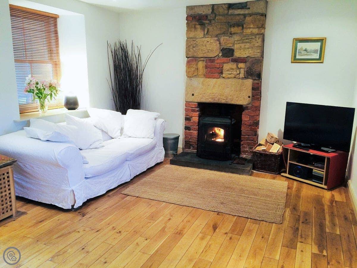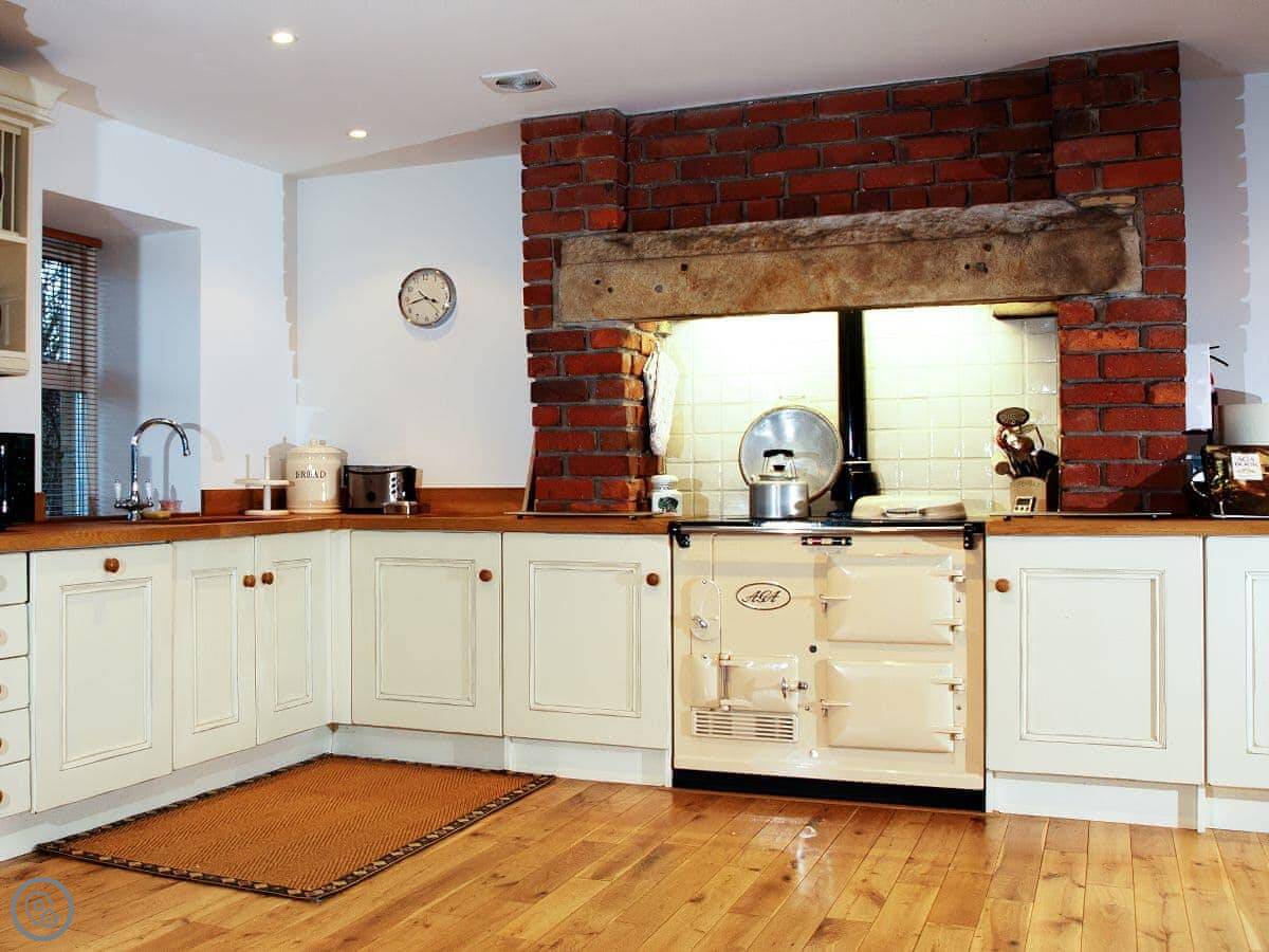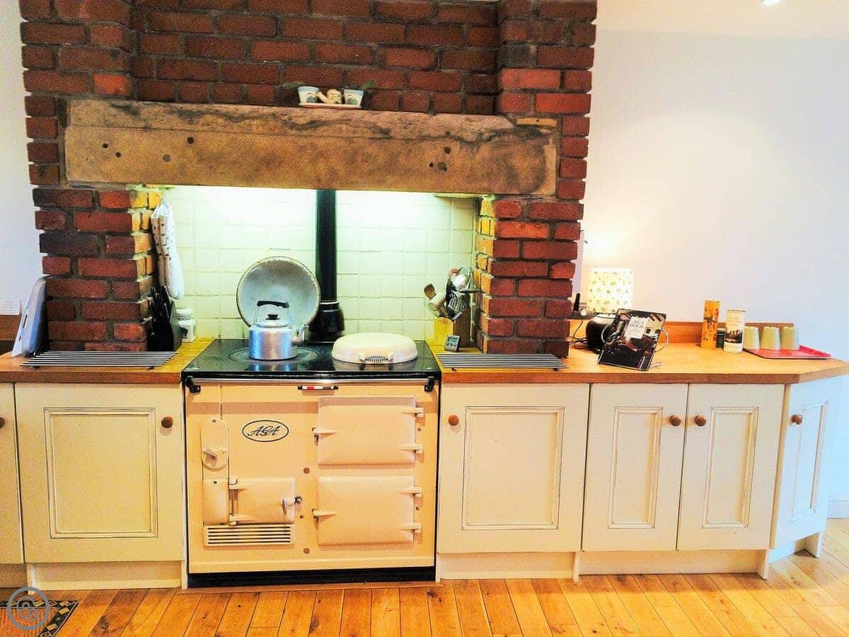 It's two bedrooms, sleeps four, one bathroom. A 4 Star place, so it's comfortable. It's been refurbished. There's an original fireplace with an Aga in it, which is on all the time. The house is always warm because of it.