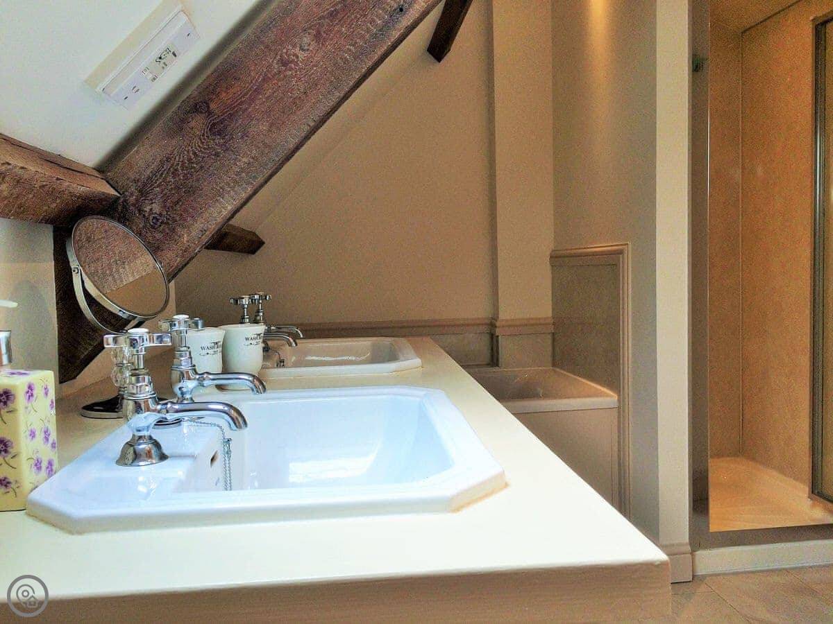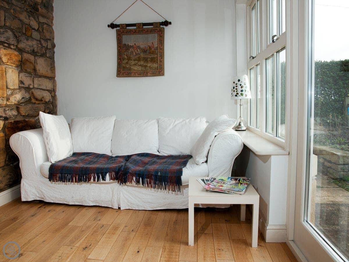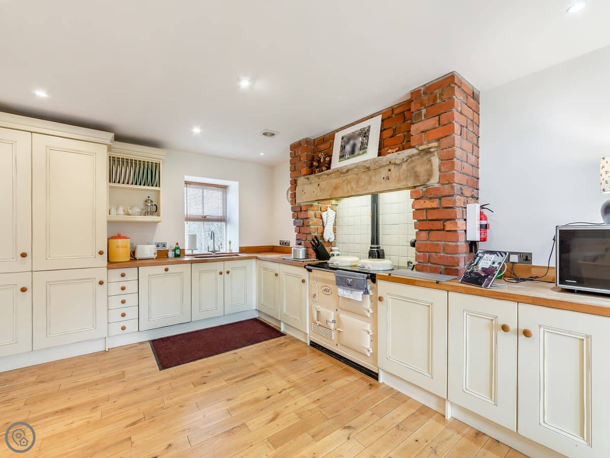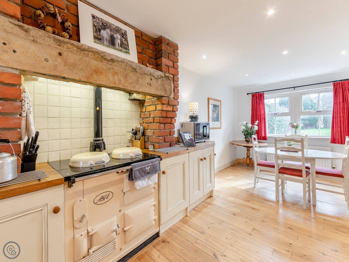 It's two bedrooms, sleeps four, one bathroom. A 4 Star place, so it's comfortable. It's been refurbished. There's an original fireplace with an Aga in it, which is on all the time. The house is always warm because of it.