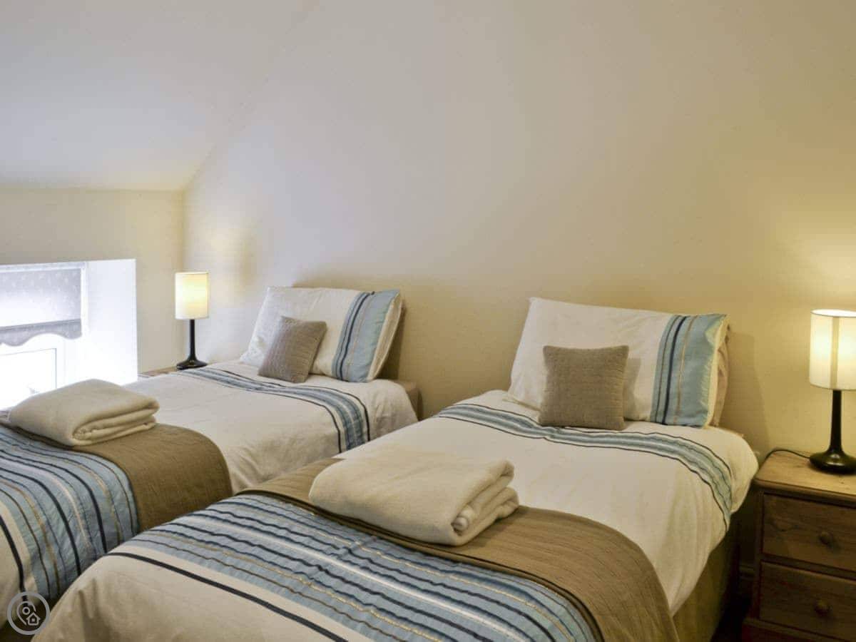 John Wesley Cottage is in Tantobie. It's one of two cottages converted from barns, the other is the Wesleyan Cottage next door. They're separate, so you get your own place. The view from the front is over fields, it's quiet.