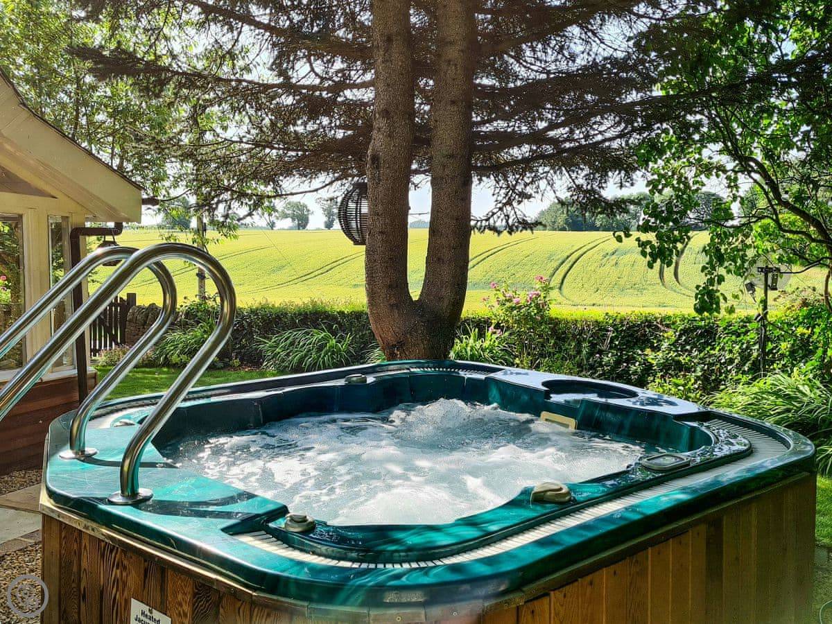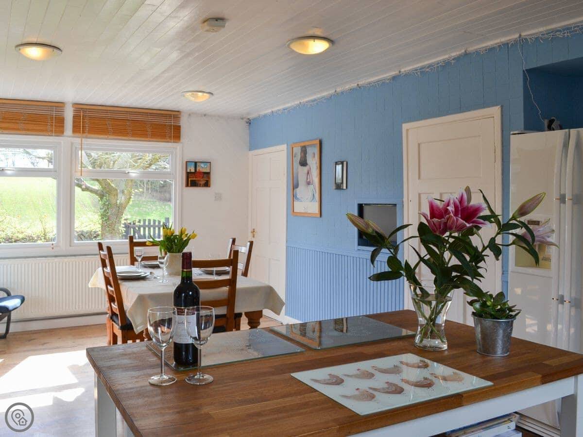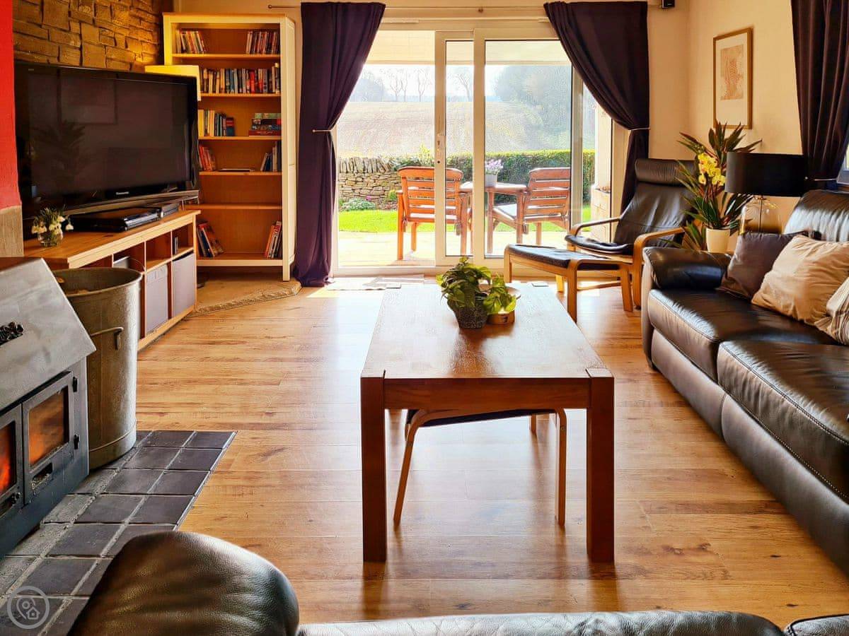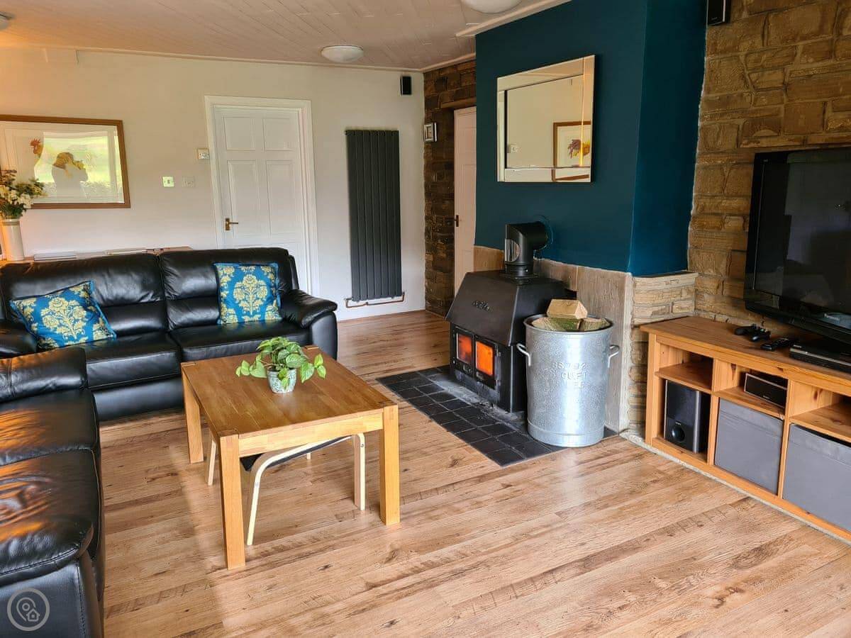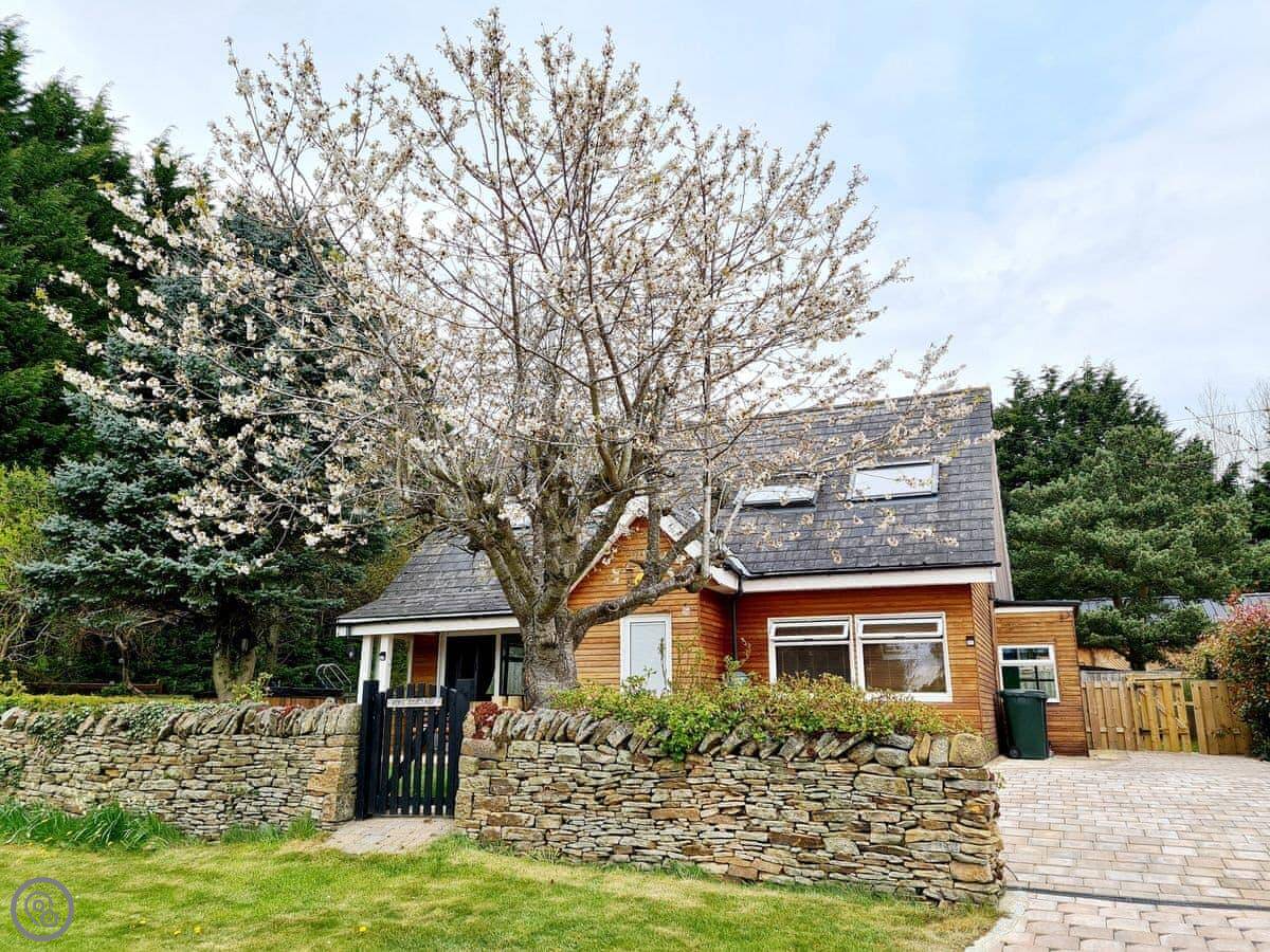 It sleeps five people in two bedrooms, with one bathroom. It's got a 4 Star rating. There's a wood burning stove, decent WiFi, and a dishwasher. Bedding and towels are included. The garden is yours to use and there's a hot tub. Parking is right there.