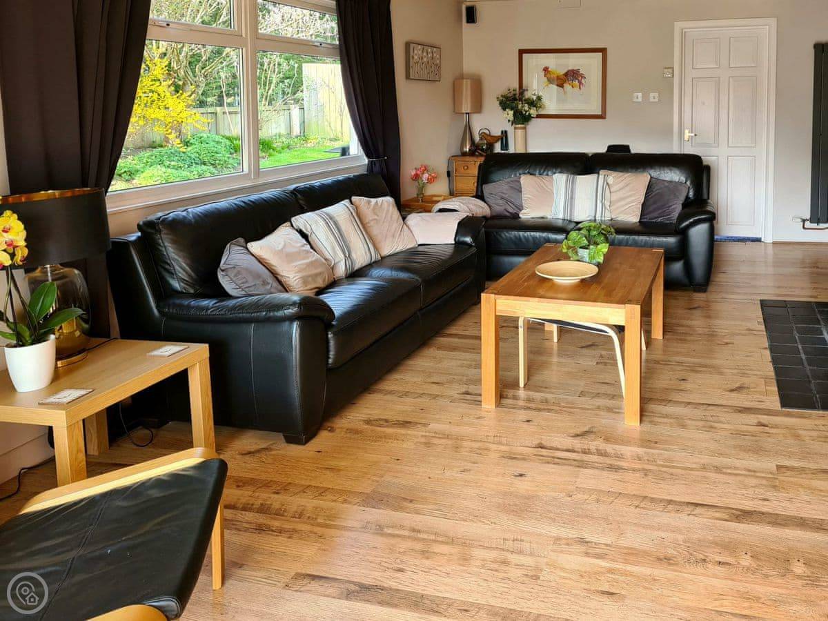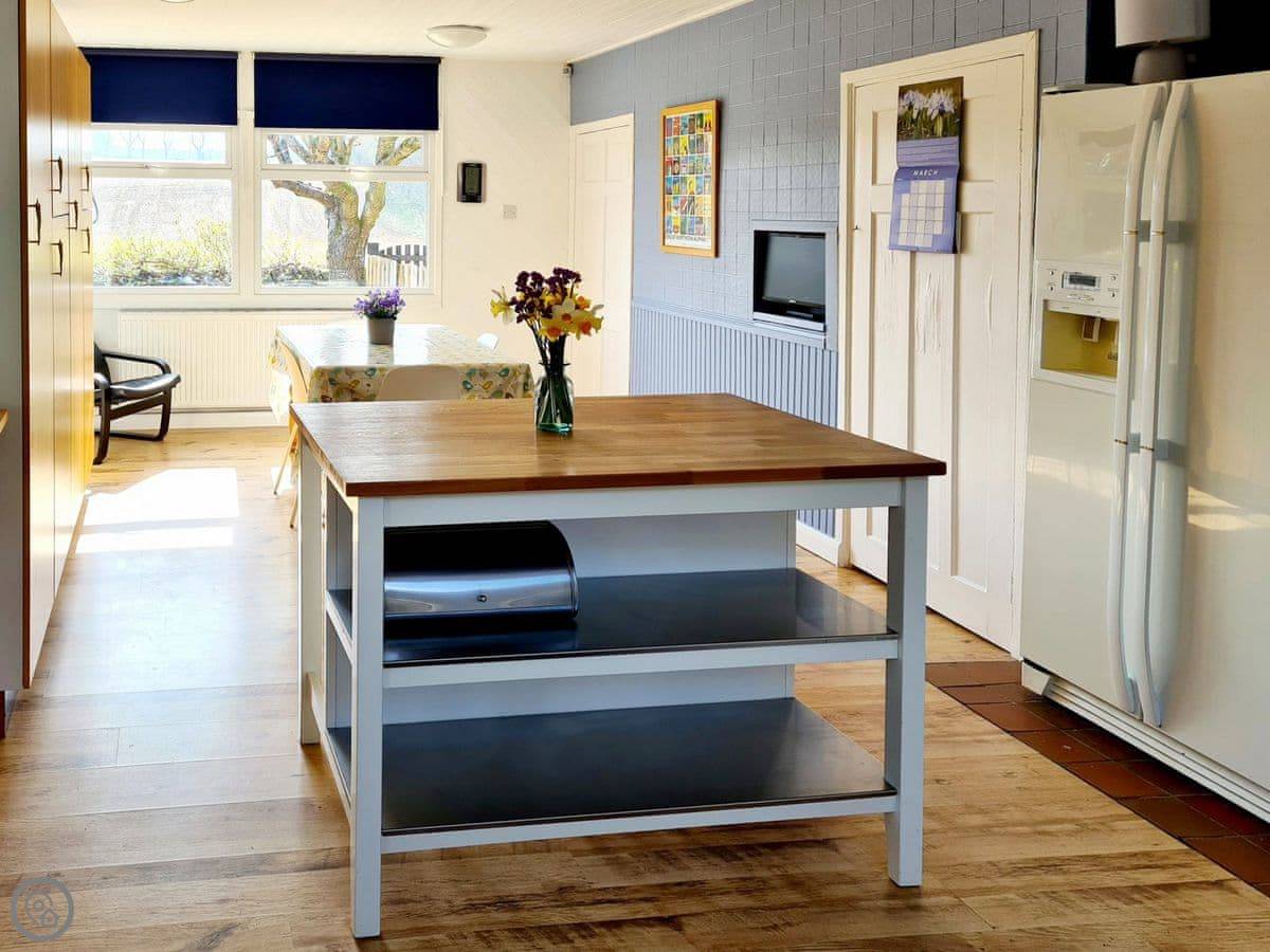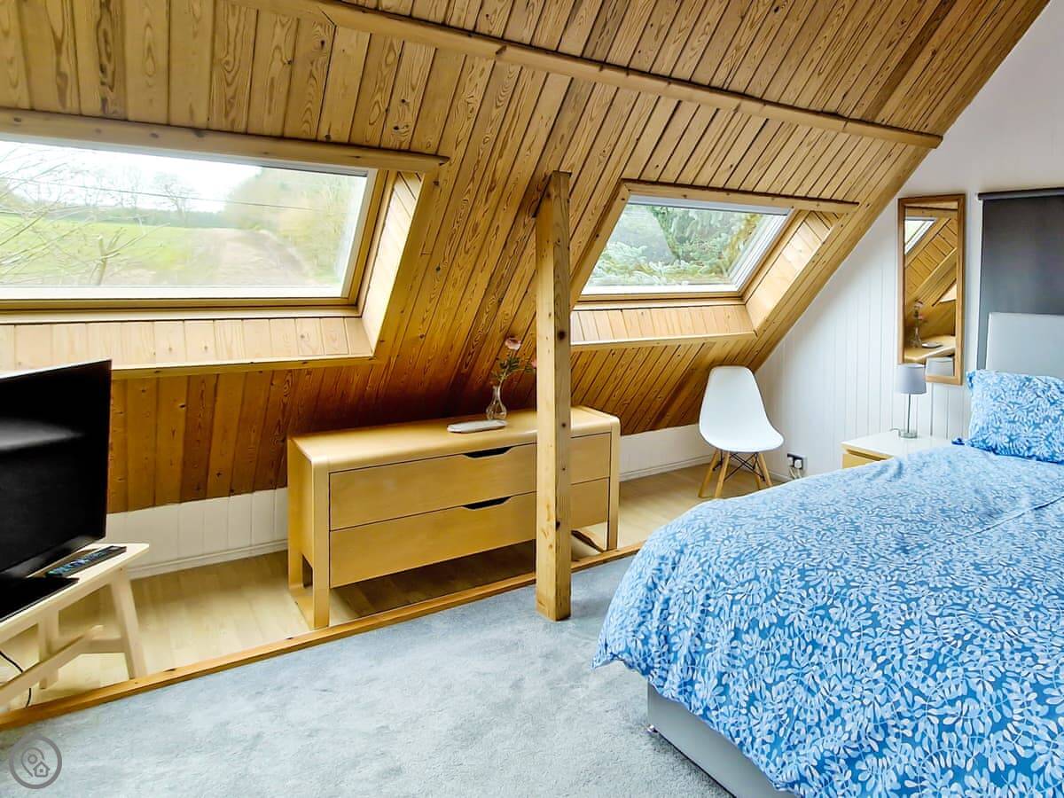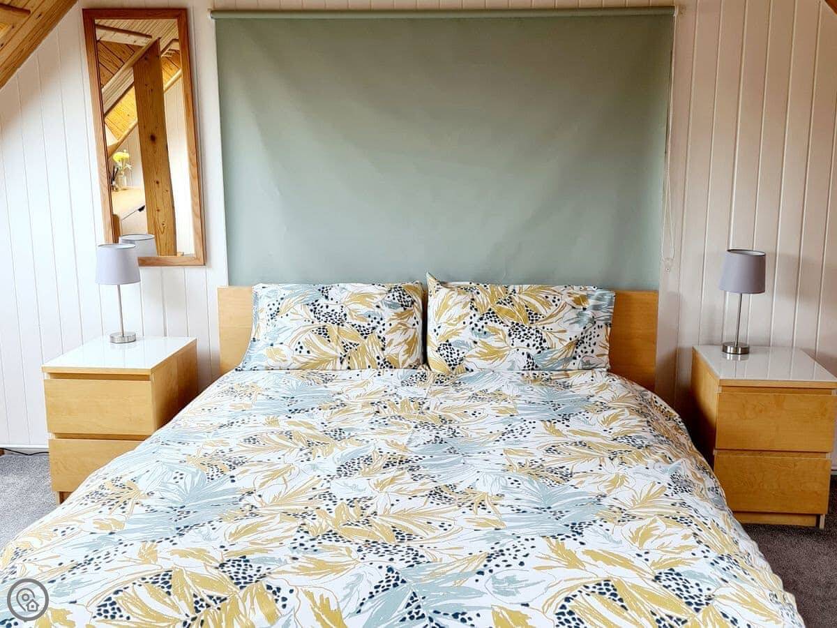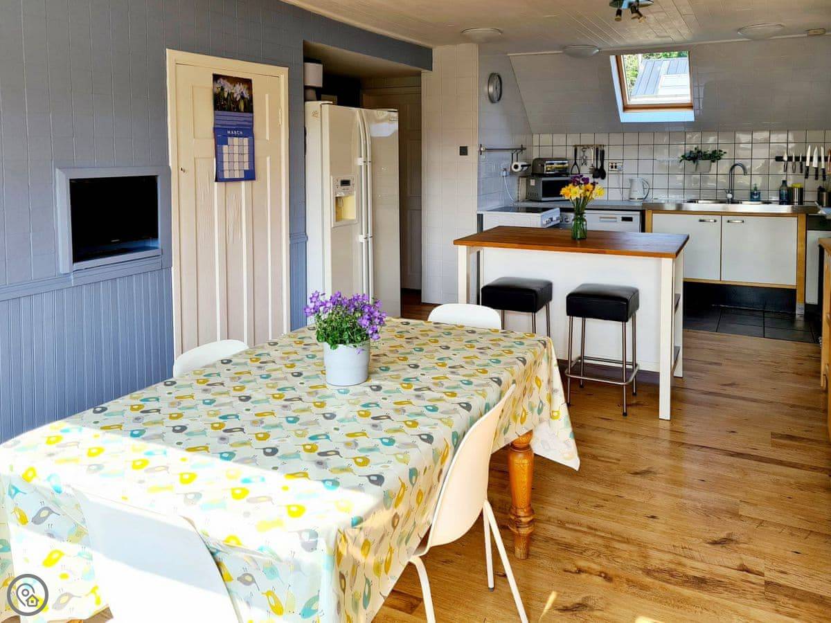 It sleeps five people in two bedrooms, with one bathroom. It's got a 4 Star rating. There's a wood burning stove, decent WiFi, and a dishwasher. Bedding and towels are included. The garden is yours to use and there's a hot tub. Parking is right there.