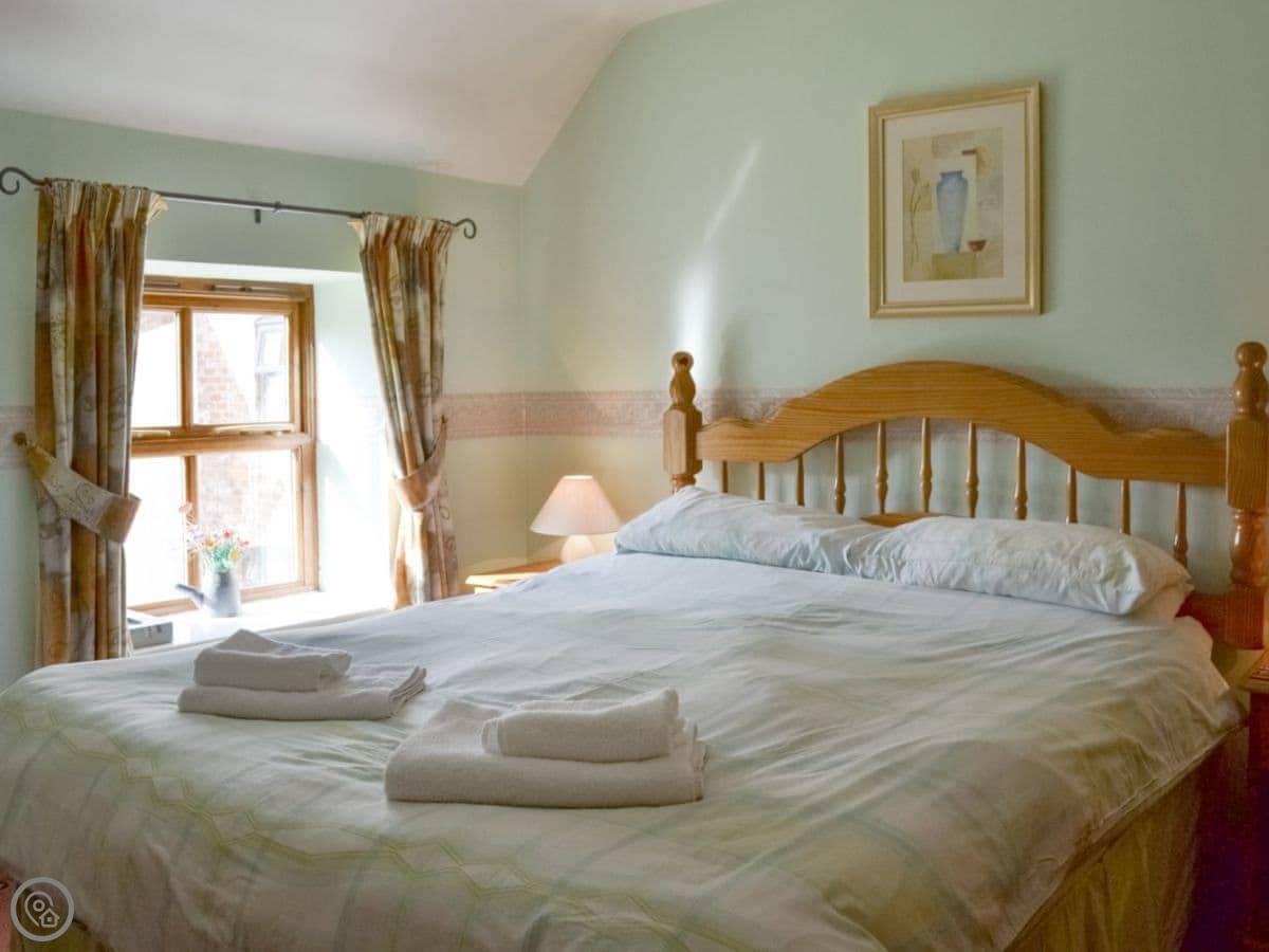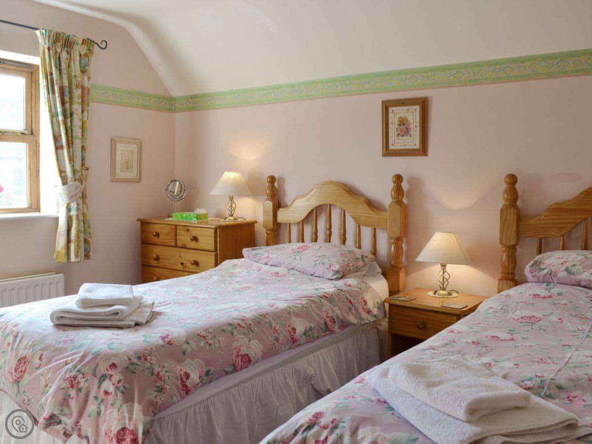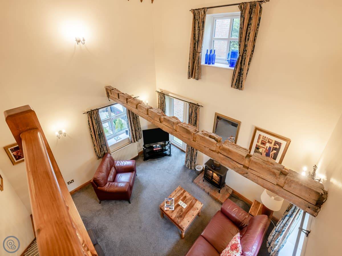 It sleeps six people. There are three bedrooms and two bathrooms, which is handy. It's got a 4 Star rating. The space is good, it's been renovated so it's not draughty, but it's still an old farm building. The ceilings are beamed.