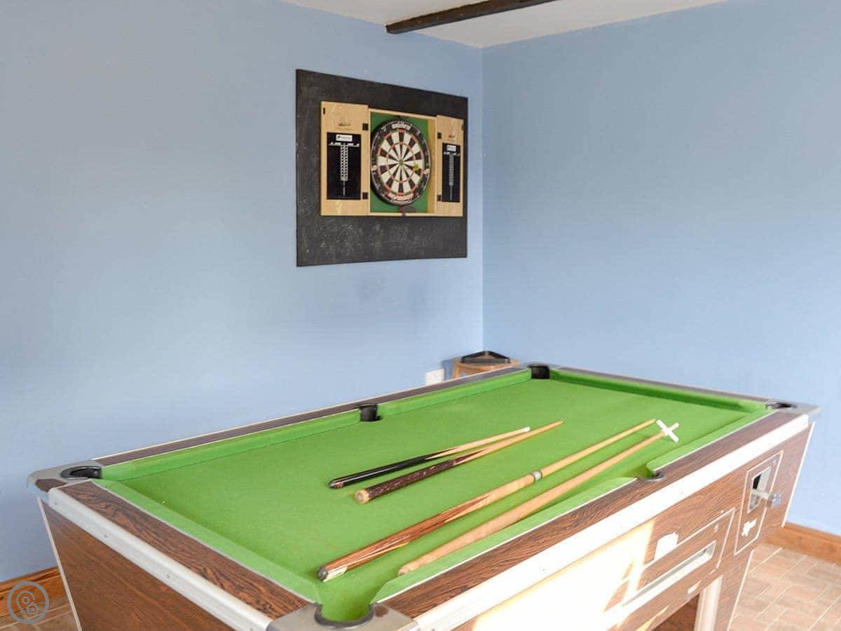 On site there's a shared games room in one of the other farm buildings. You get your own garden and patio area with a BBQ. Parking is right there.