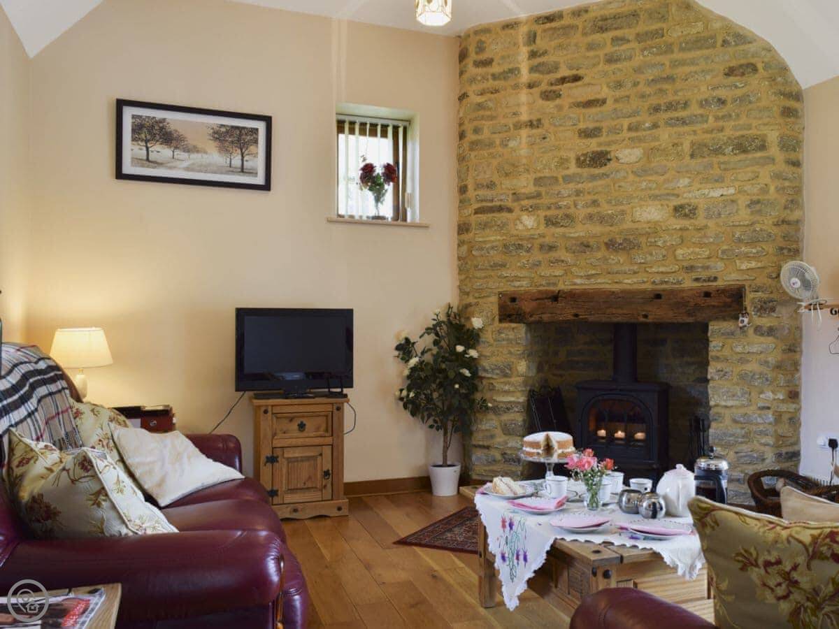 Alfie's Barn is a converted barn from the 1700s. It's in our garden here in Ambrosden, so you'll see us about sometimes. The building is detached and looks out over the fields.