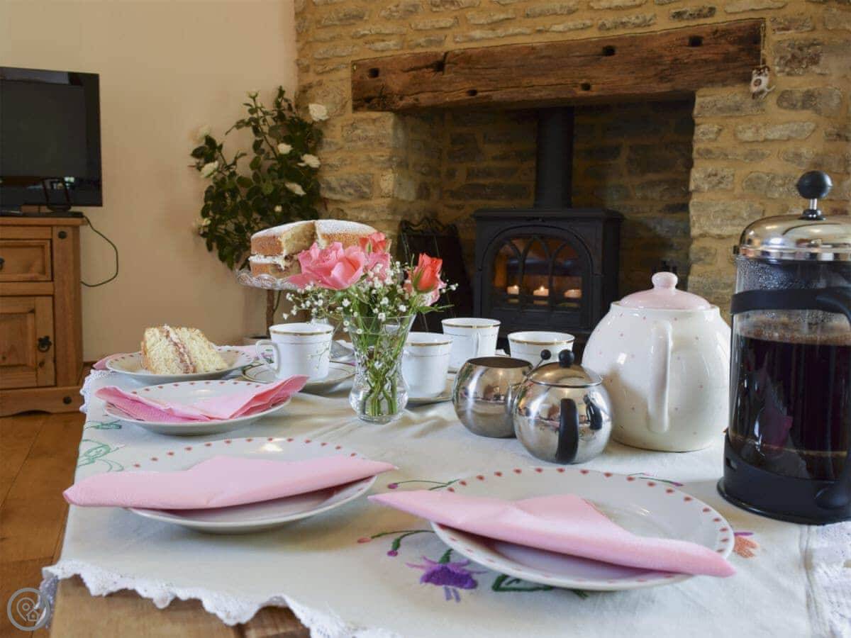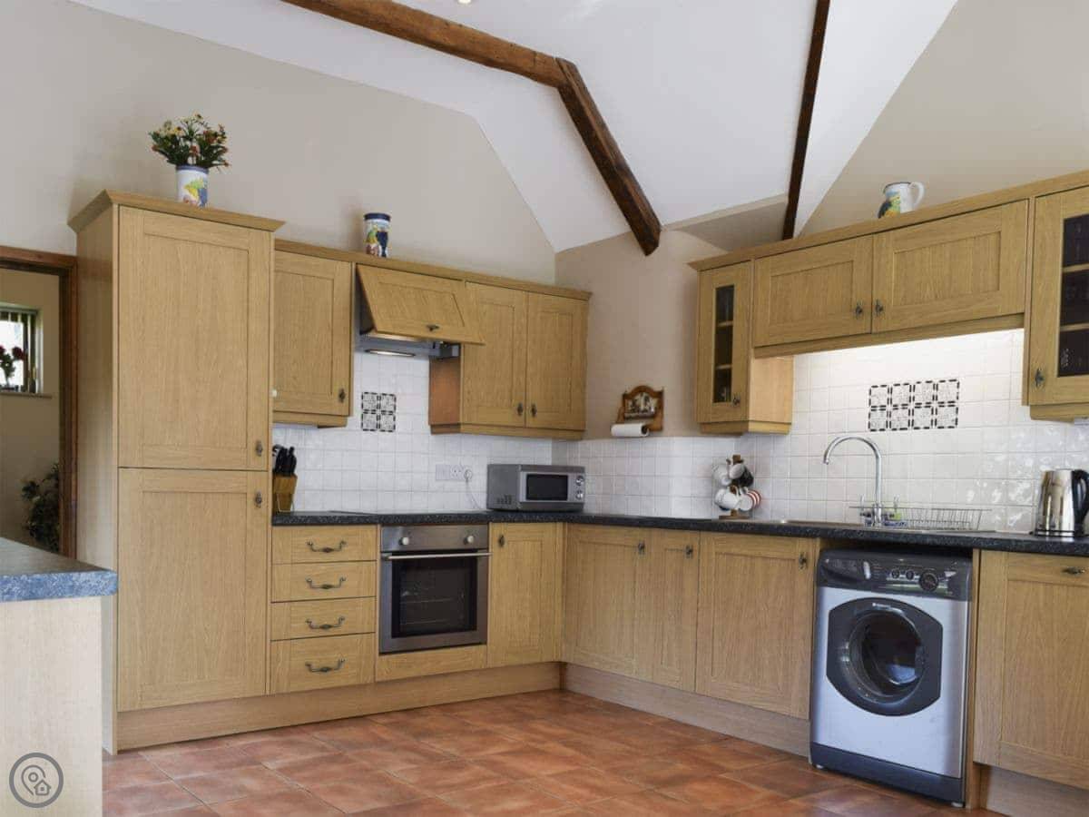 The barn has an enclosed patio garden. Inside, there's a woodburning stove for colder nights, and the usual things like a dishwasher, washing machine, and wifi. Bedding and towels are provided. There's a cot and highchair if you need them. Parking is right next to the barn.