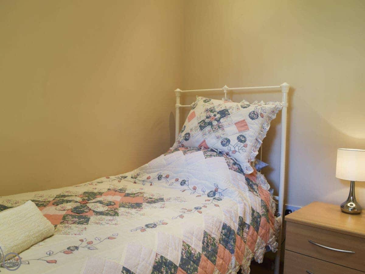 It sleeps five people. There are three bedrooms and two bathrooms, which is helpful. It has a 5 Star rating, which means everything is in good order and it's well equipped.