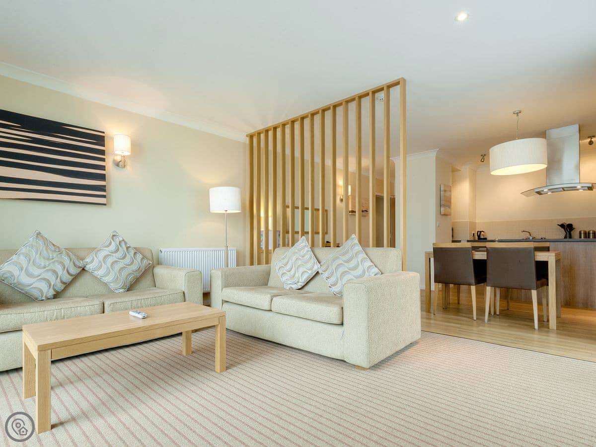 It's part of the De Vere Cotswold Waterpark Hotel complex. You get your own apartment with a kitchen and living space, but you can also use the hotel things. That means there's a restaurant, a bar, and a leisure club with an indoor pool. There's a gym and a sauna too. The 24-hour reception is handy if you need anything.
