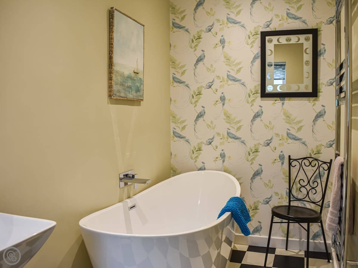 For facilities: there's parking right outside. Washing machine, towels and bedding are included. We've got a cot and highchair if you need them. There's a wood burner for cooler evenings, and bike storage. We're a working farm, so there are animals about. Sorry, no pets.