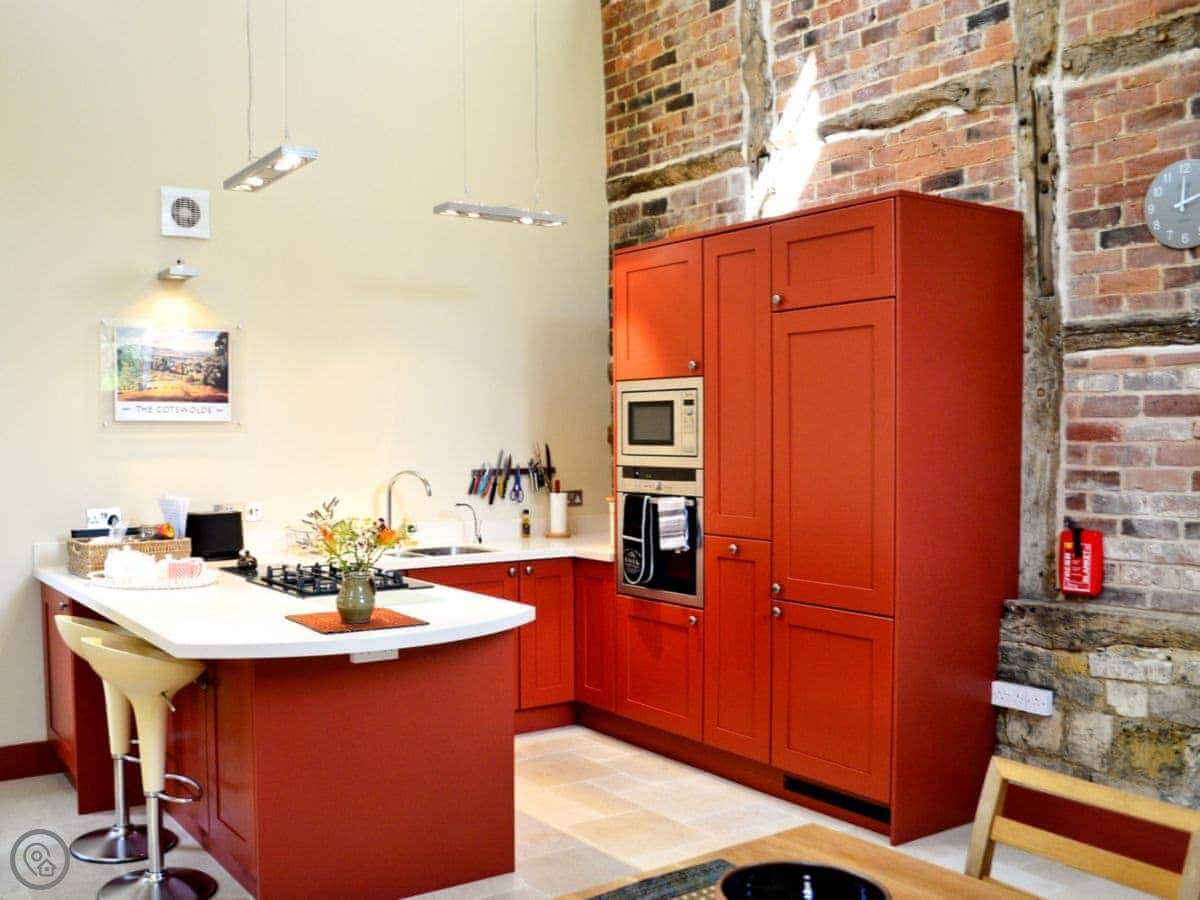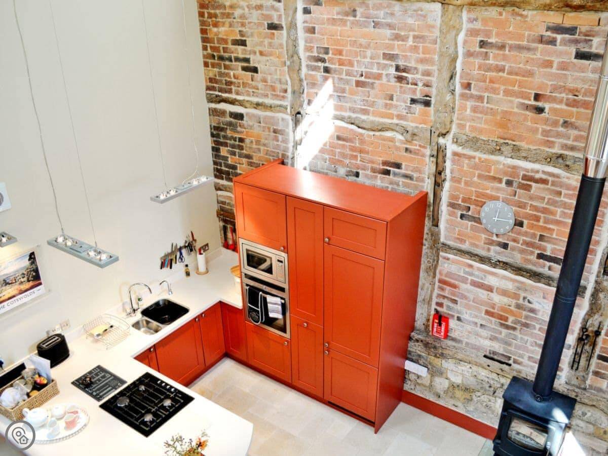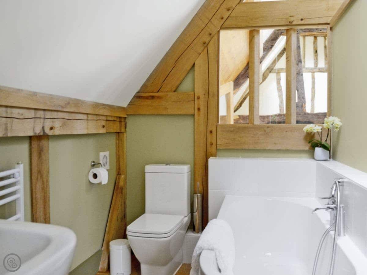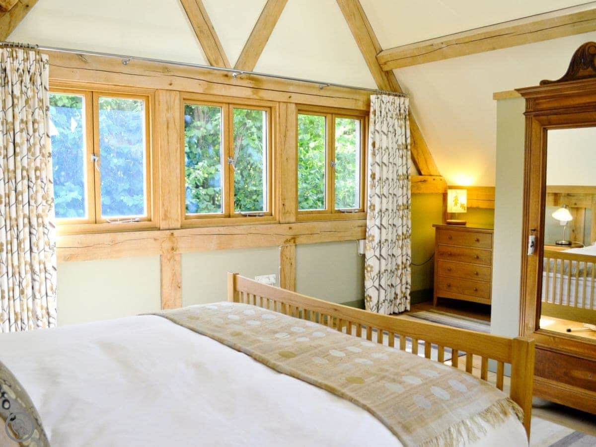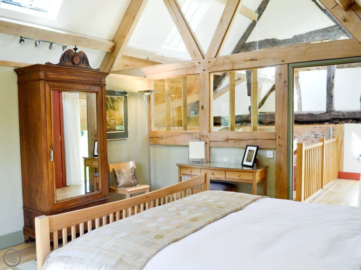 The Barn Reborn is part old and part new - rescued from a state of decay. Now, contemporary furnishings blend elegantly with traditional features and sumptuous furnishings. The marble tiled kitchen/dining room has a warm mellow feel, with painted kitchen units which match the original rosy coloured bricks in the double height timber framed wall. The central reception area is glazed from floor to roof and fills the property with light. A wood-burning stove and underfloor heating keep the barn warm throughout the year. On the first floor, behind an open oak framework wall filled with glass, is an en-suite bedroom with a 6ft oak bed which complements the oak floors and exposed oak timber frame, which all add to the period charm.