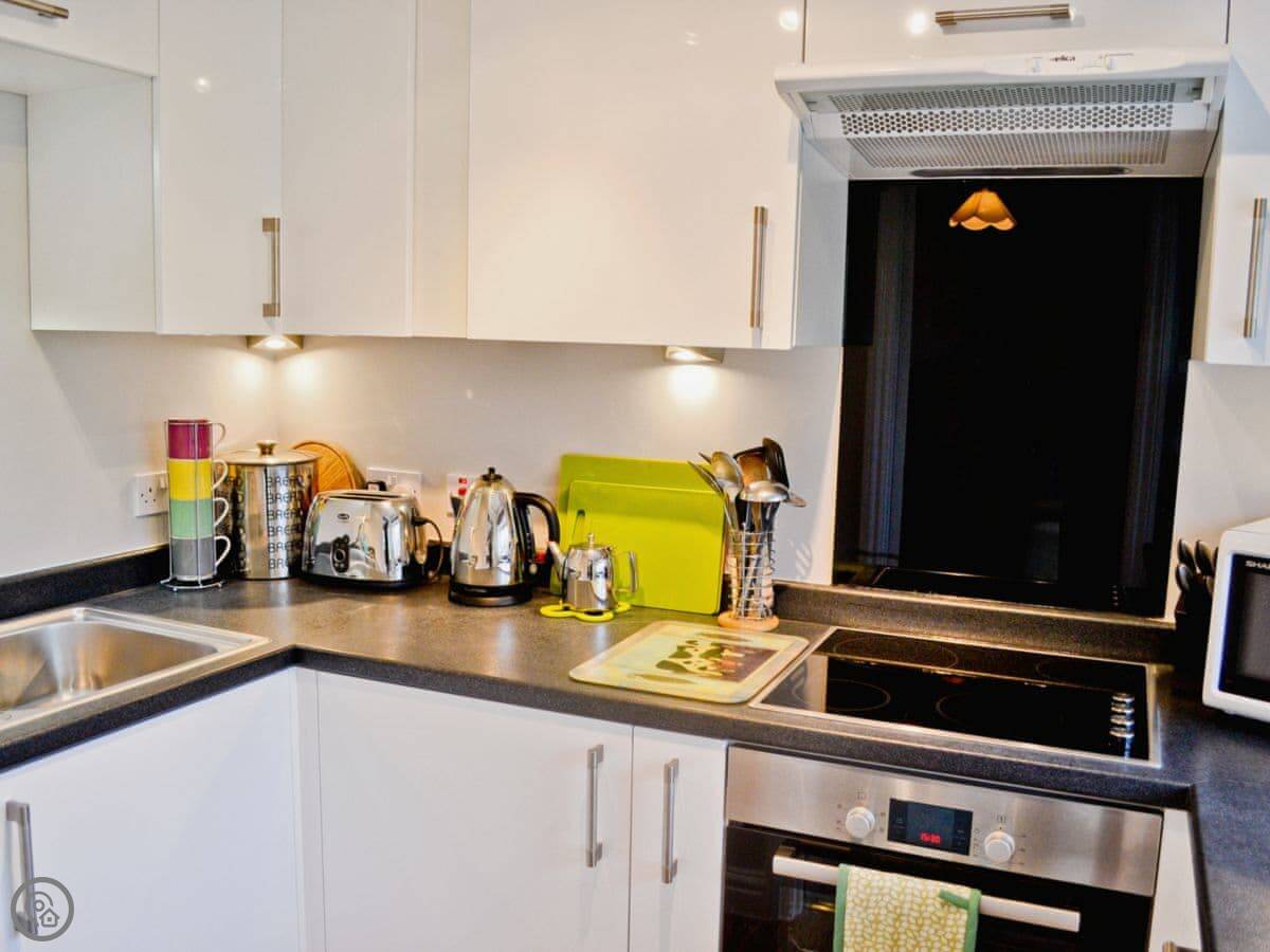 It sleeps four. Two bedrooms, one bathroom. It has a 4 Star rating, which means it's well-equipped and comfortable. It's not huge, but it's fine for four people.