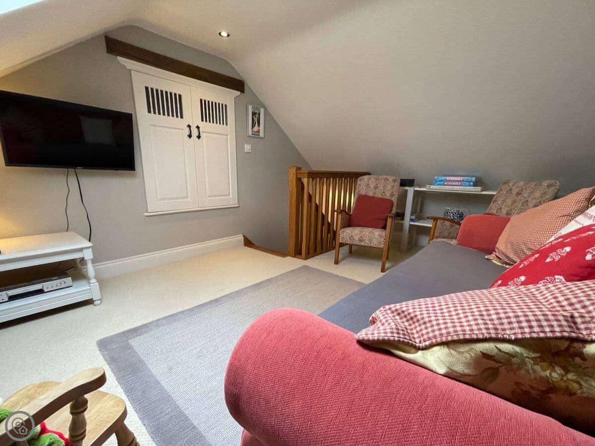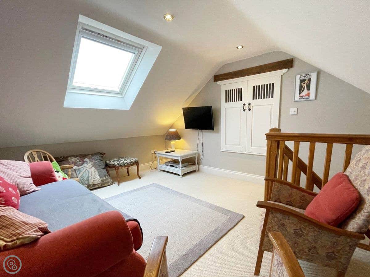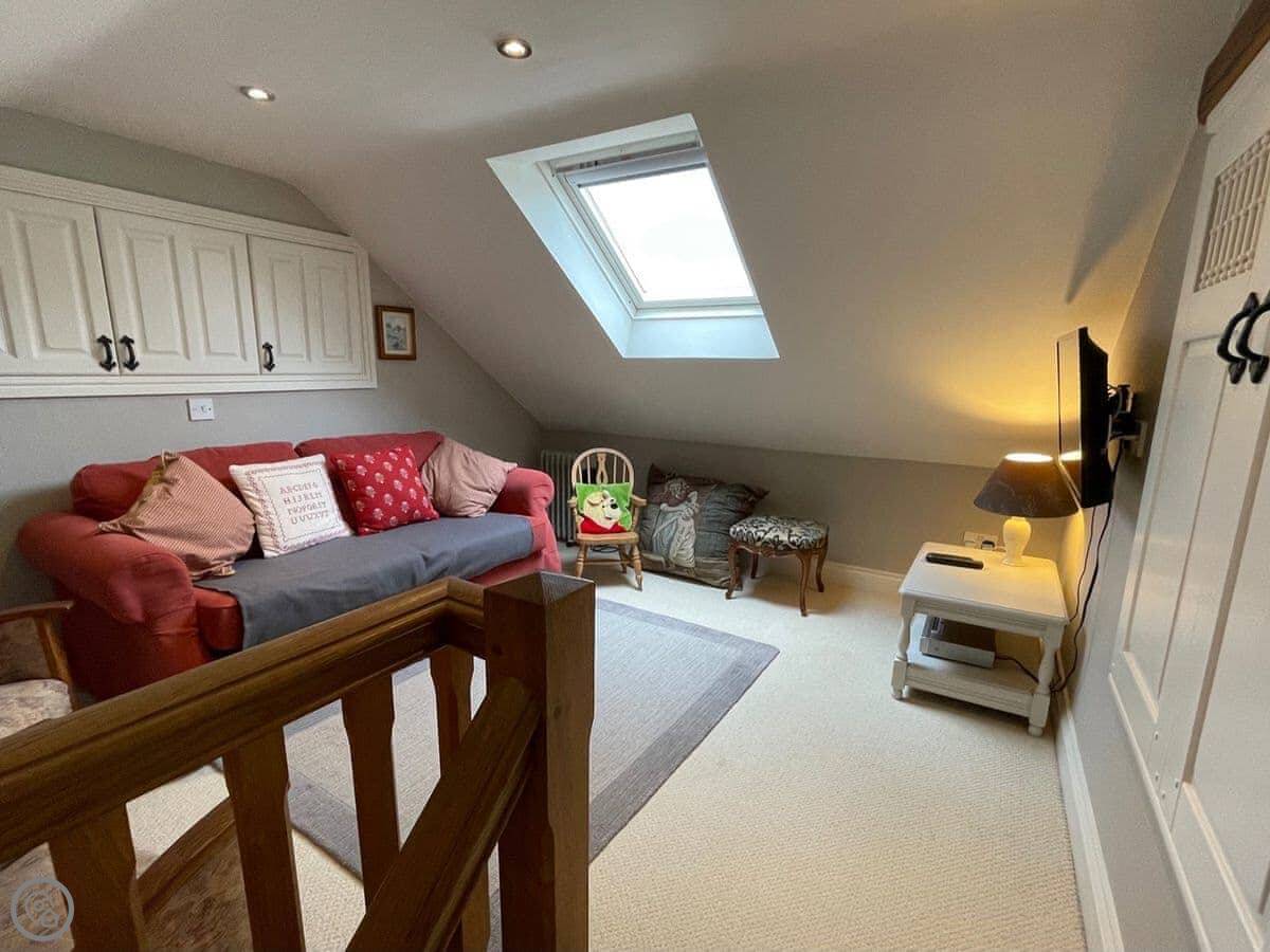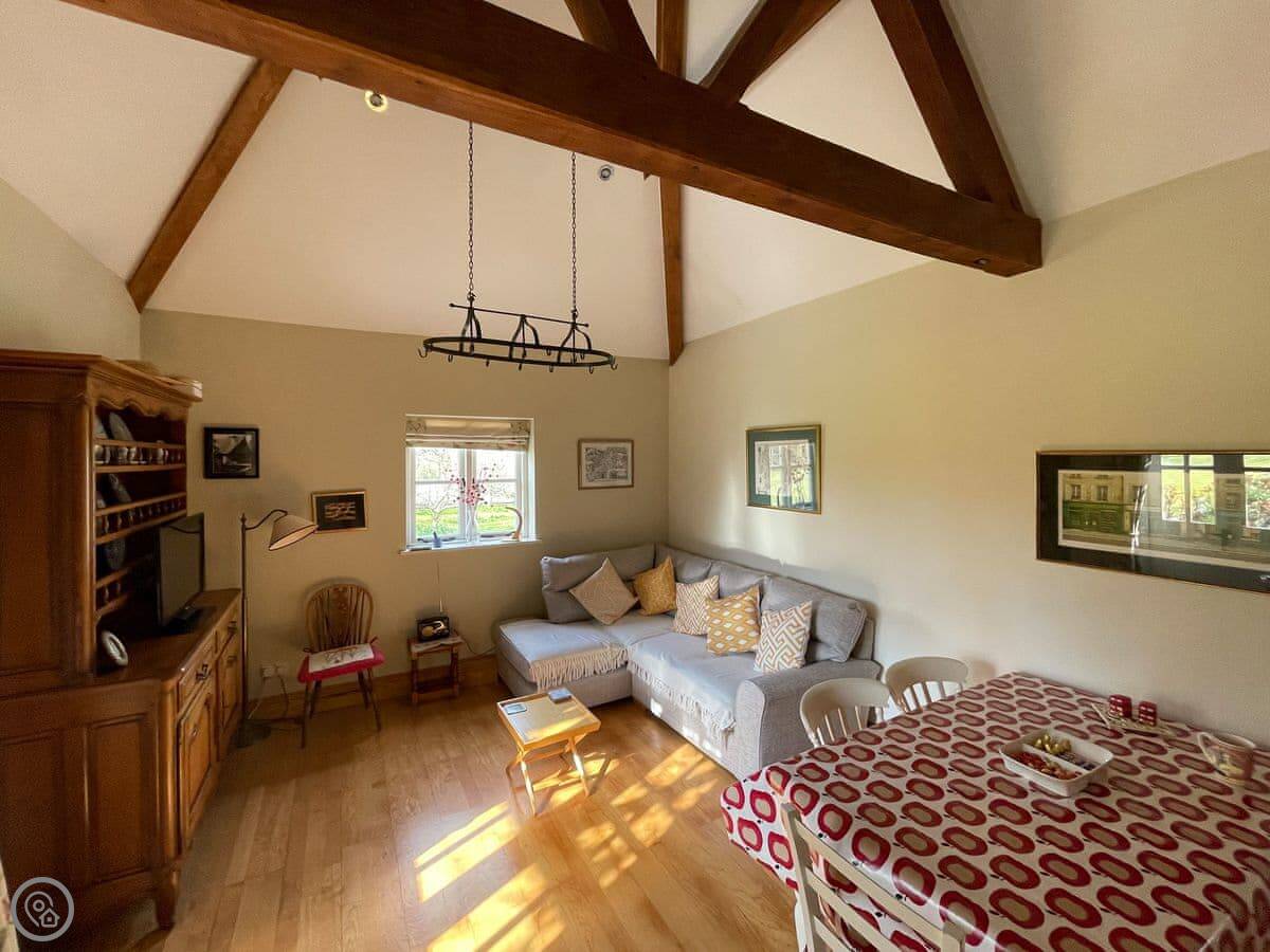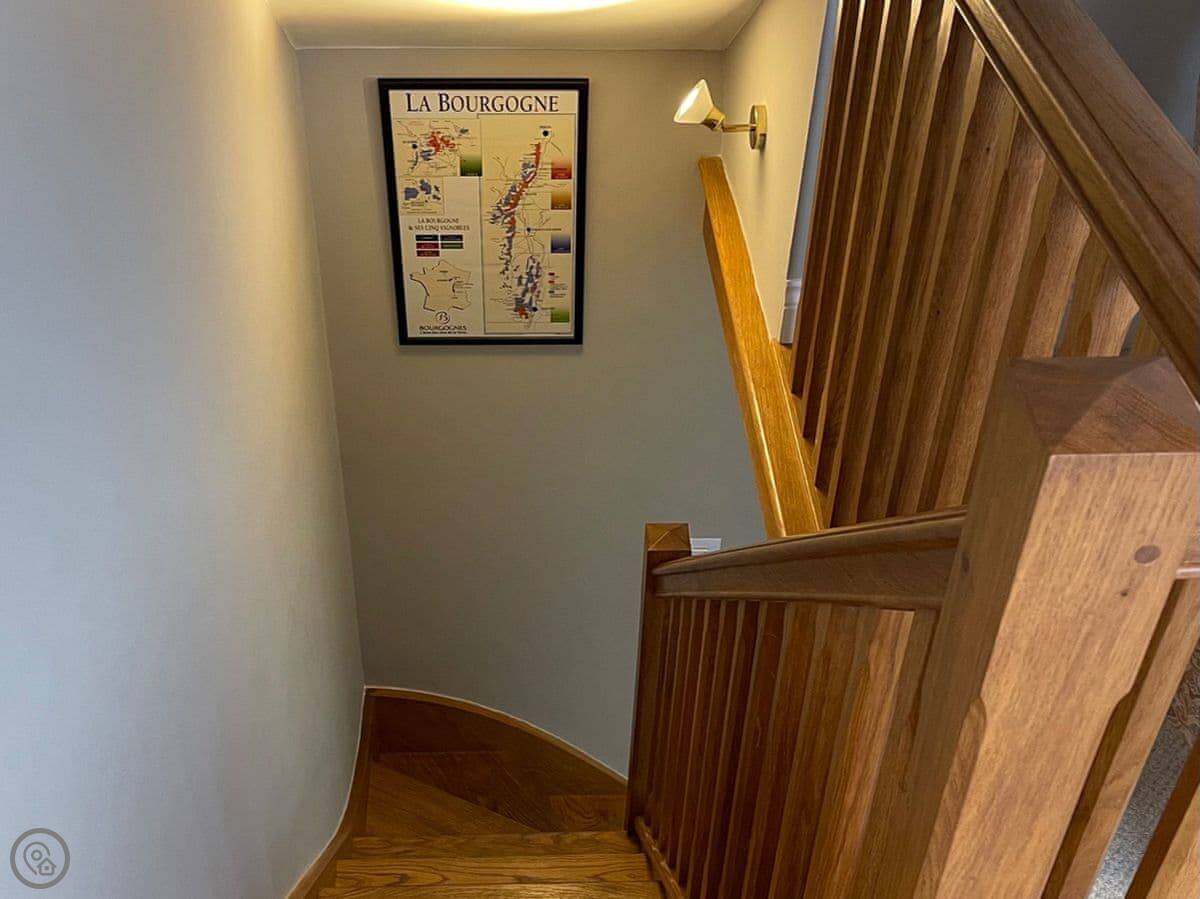 The place is open plan downstairs. The stairs are wooden and quite steep, typical for an old barn conversion. Something to watch if you've got unsteady knees.