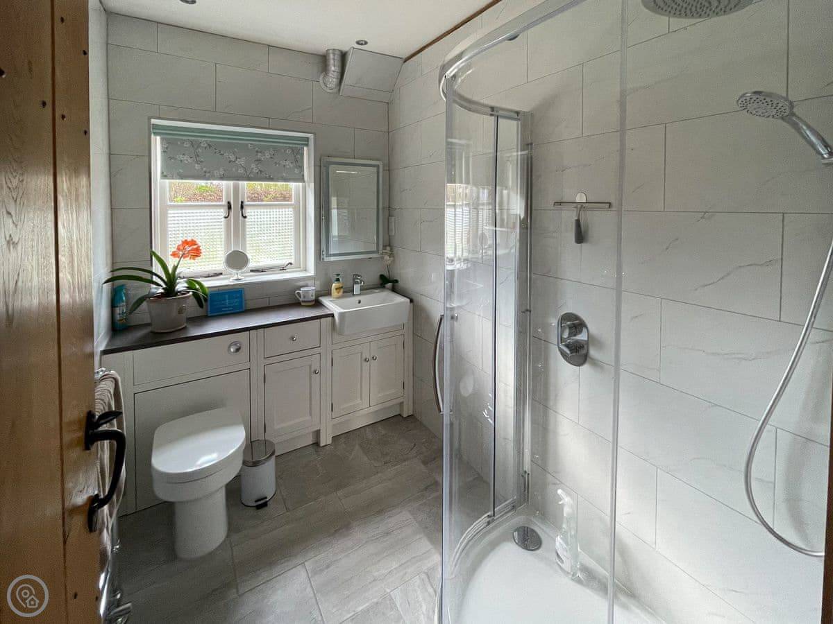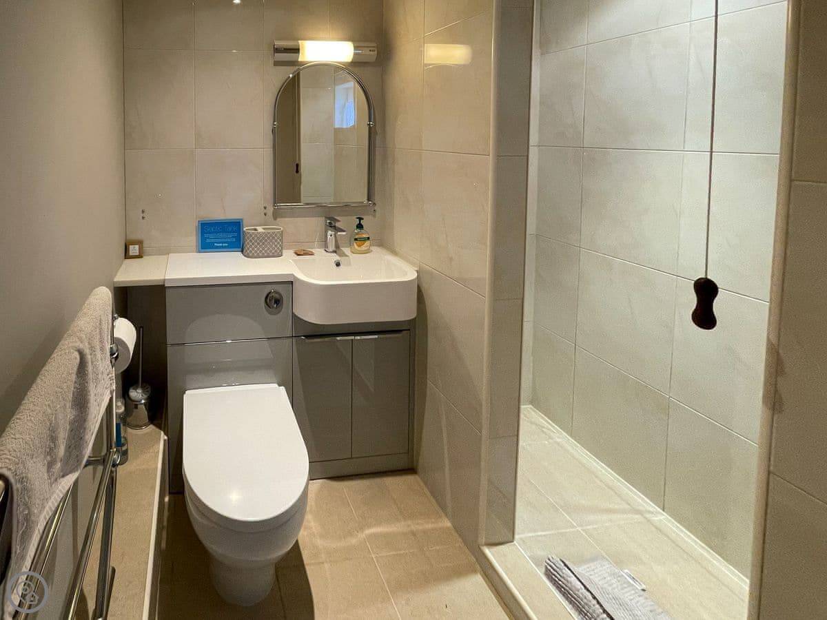 It sleeps four. Two bedrooms, both with their own bathrooms. That's useful. It's got a 5 Star rating, which means it's very well equipped and comfortable.