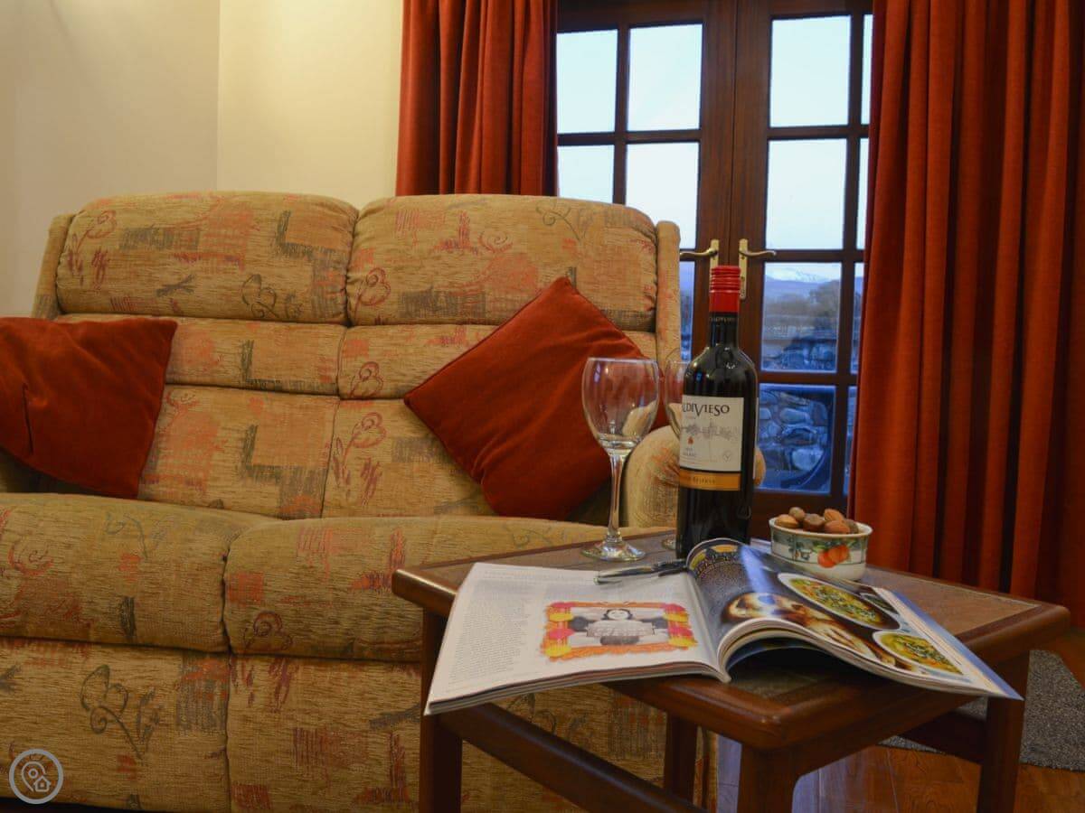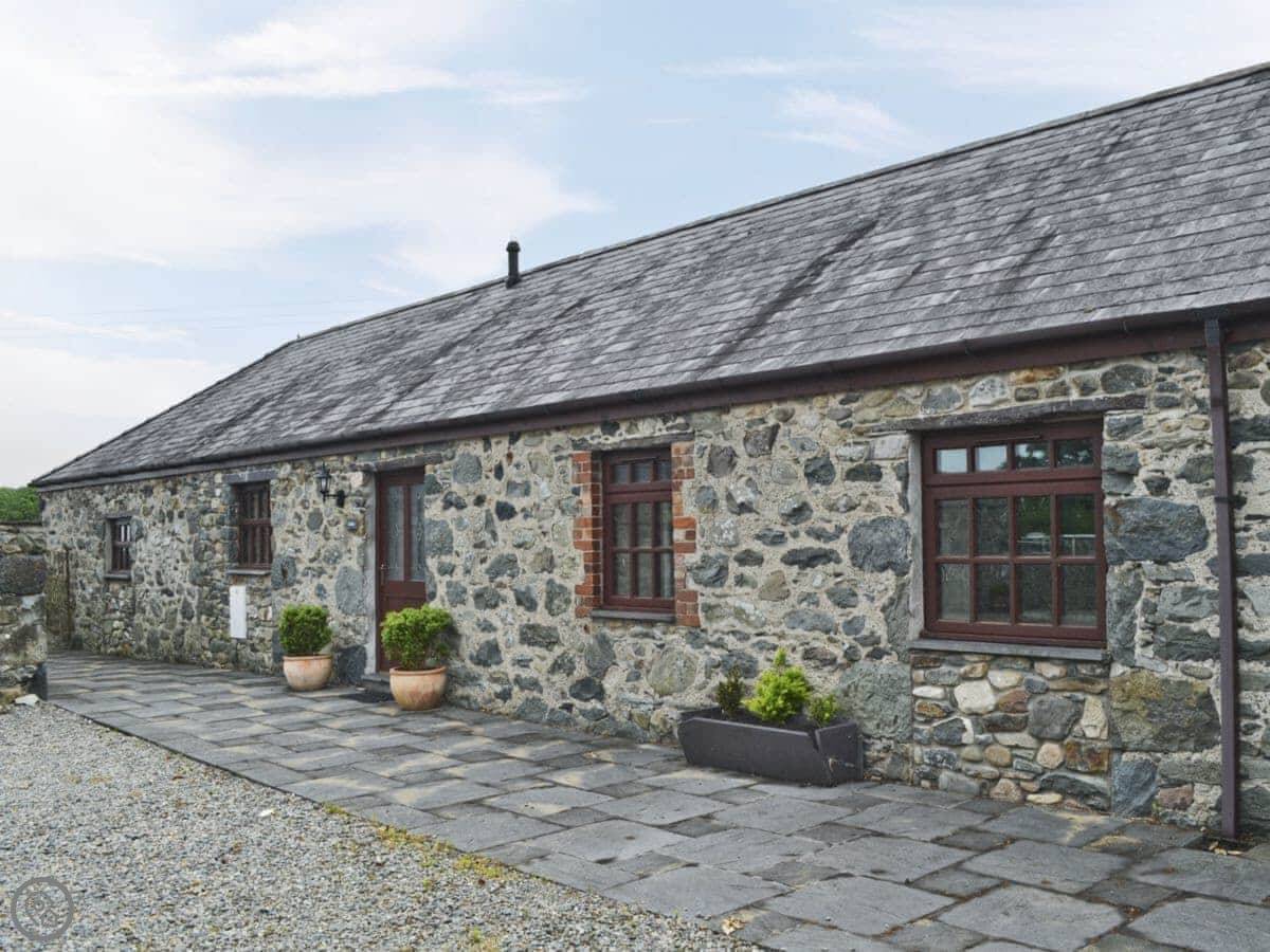 This is Gadlas. It's a barn conversion in Dinas, near Caernarfon in North Wales. It's all on one floor, which is handy. You get nice views over the fields from the living room. You can actually see the turrets of Caernarfon Castle from the window, which is a bit special.