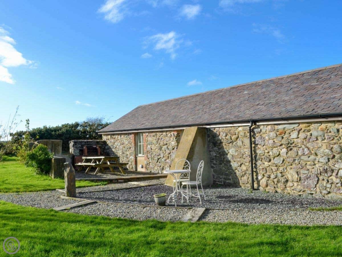 Ty Cam is out on the Llyn near Aberdaron. It's a single-storey barn, so everything's on the ground floor. Detached, so it's just you and the fields.